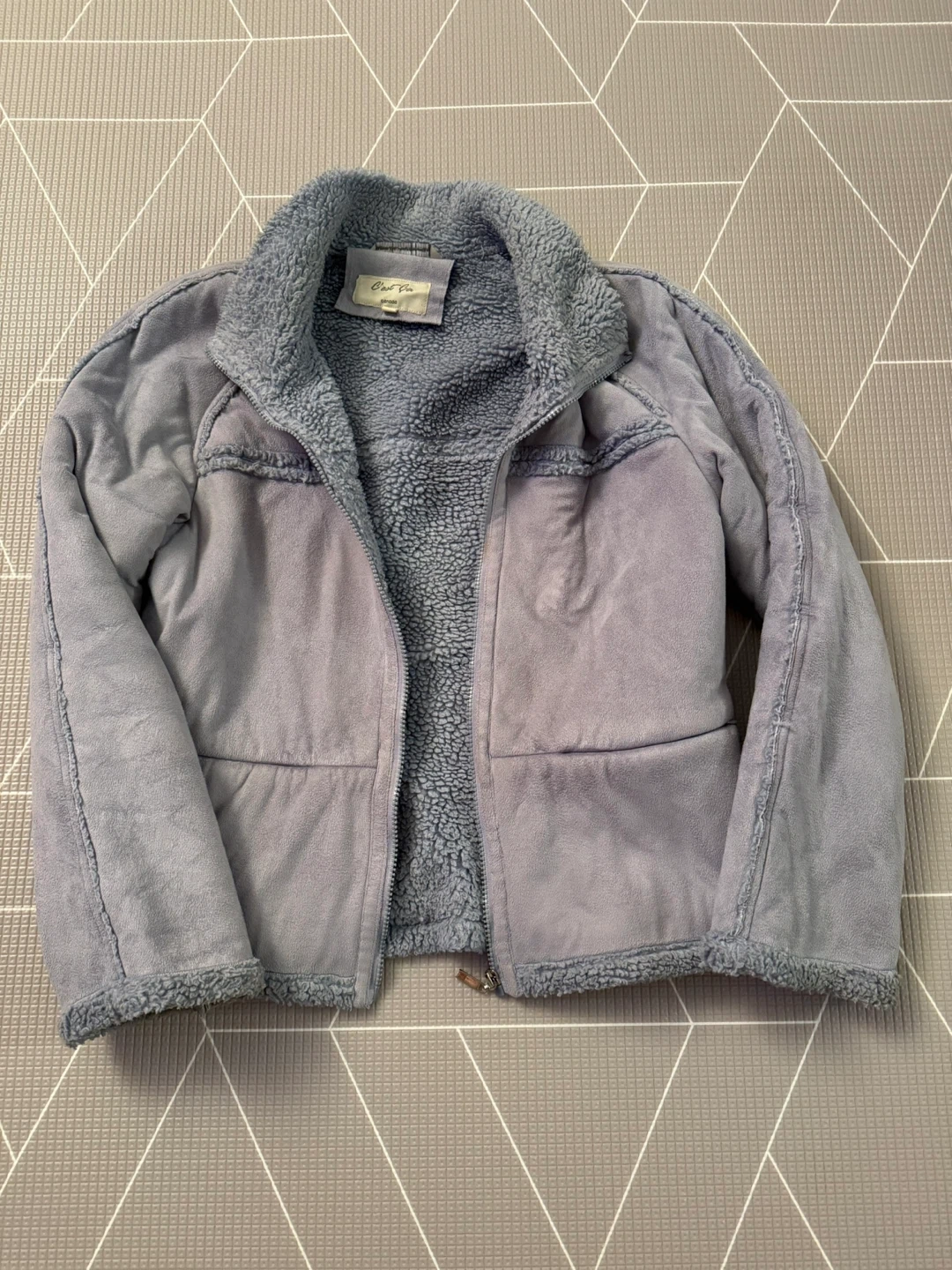Selling a cozy C'est Ca Canada jacket in a lovely blue colour! It's in great condition and features a soft, sherpa-like lining to keep you warm. Perfect for chilly days!