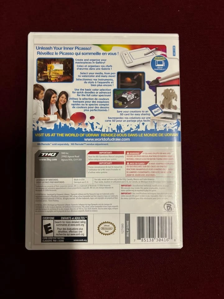65Udraw Studio for Wii, used in great condition. Asking $35 or best offer. I also have other Udraw games for Wii available if anyone is willing to bundle. Pick up in Mississauga, Ontario. Feel free to check out my seller profile for other Video Games and collectors merchandise. Thank you.
