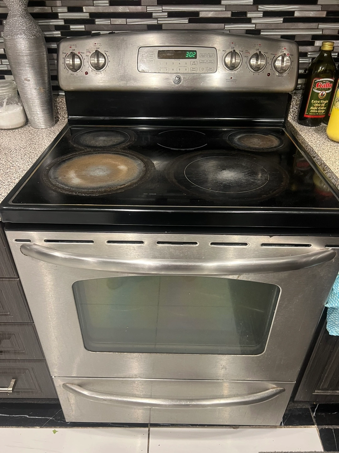 Selling a used GE electric range oven. It's in good working condition. Perfect for any kitchen!
