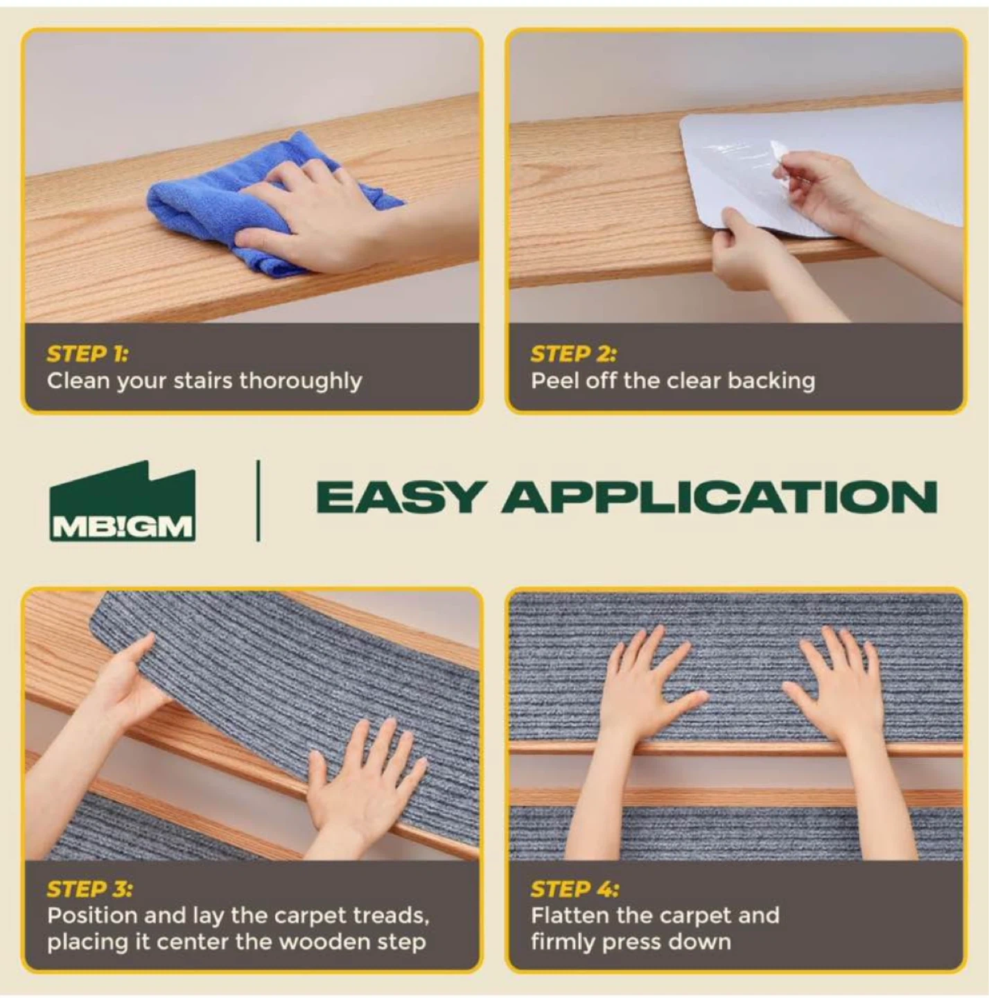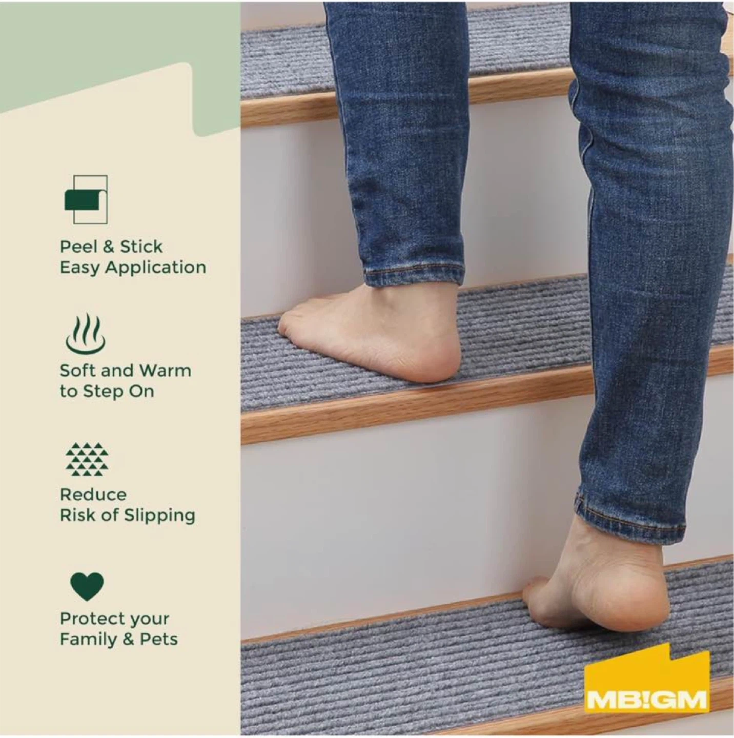 Brand new MBIGM 8" X 30" (15 in Pack) Non-Slip Carpet Stair mat Safety Rug Slip Resistant Indoor Runner for Kids Elders and Pets with Reusable Adhesive, Grey Price is firm No holds no delivery