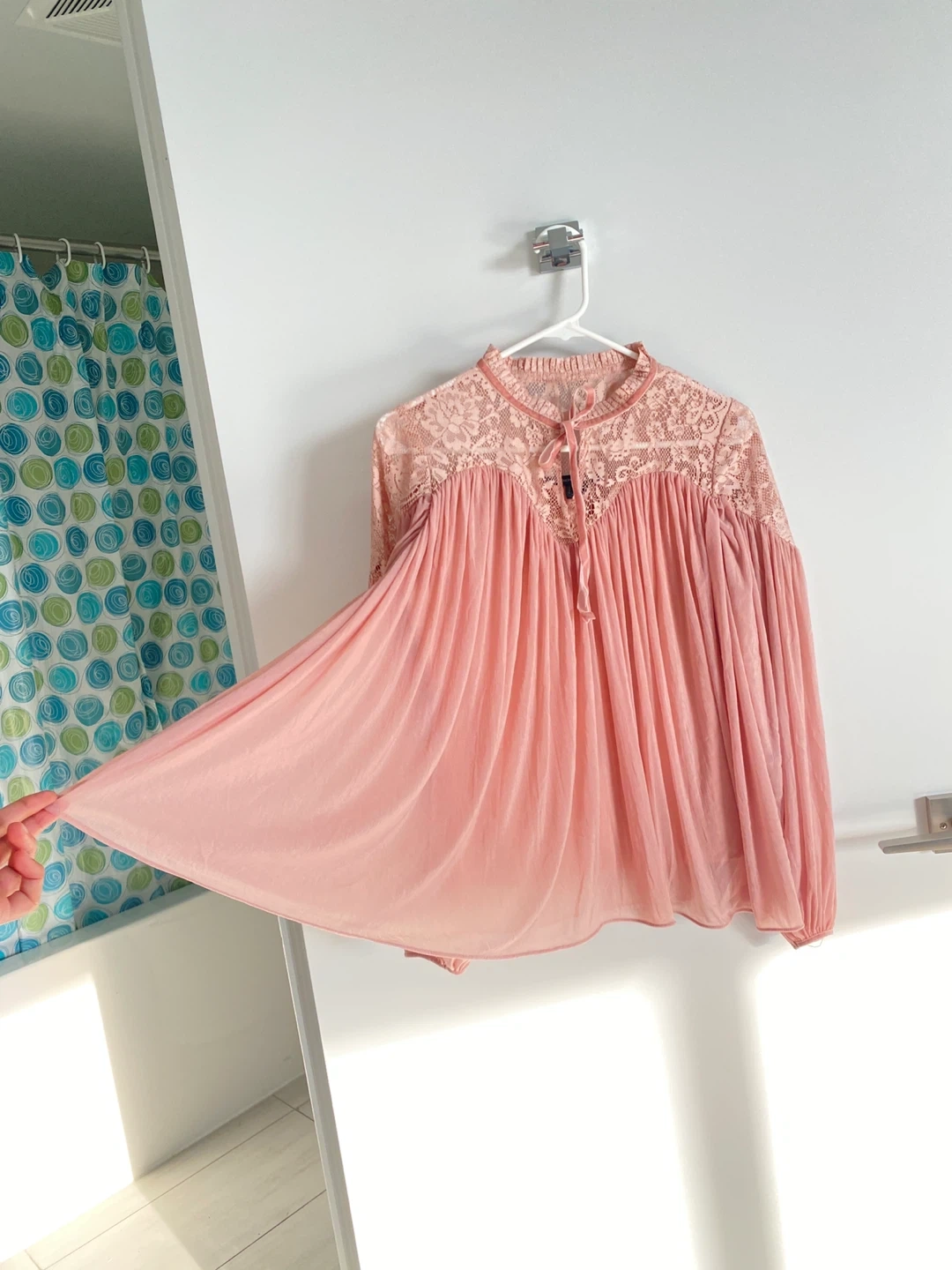 Selling a beautiful French Connection blouse in a lovely shade of pink! It features delicate lace detailing, bow closeup infront, heart neckline and a flattering silhouette. Size is Small. ❤️Check out my other listings!