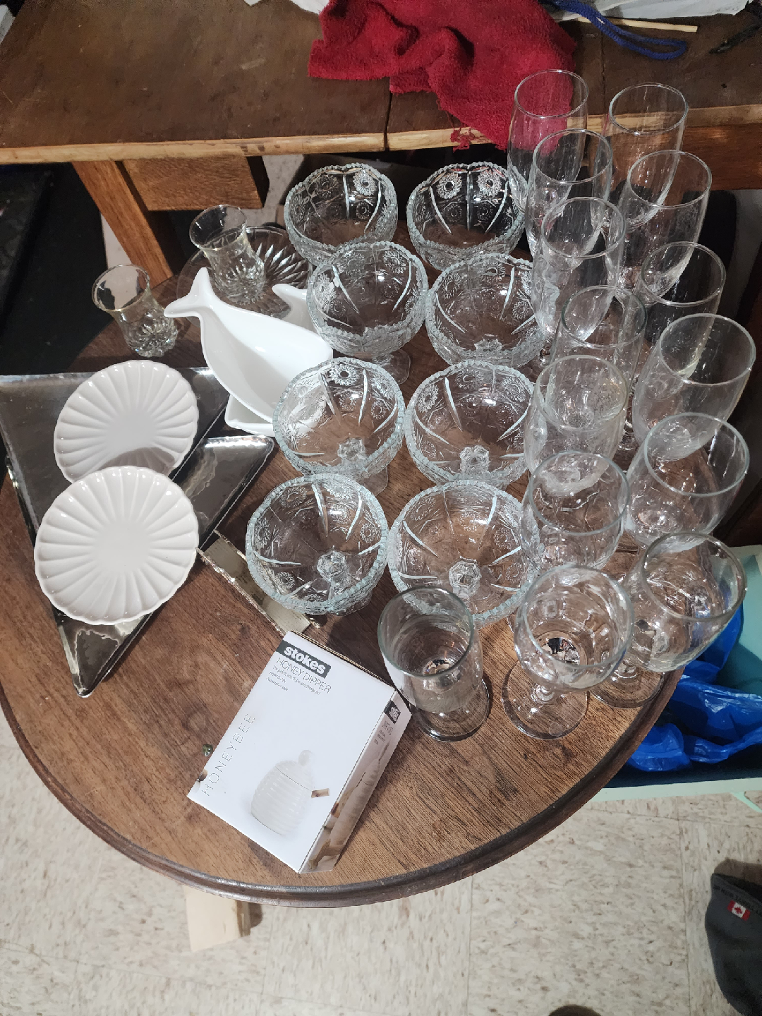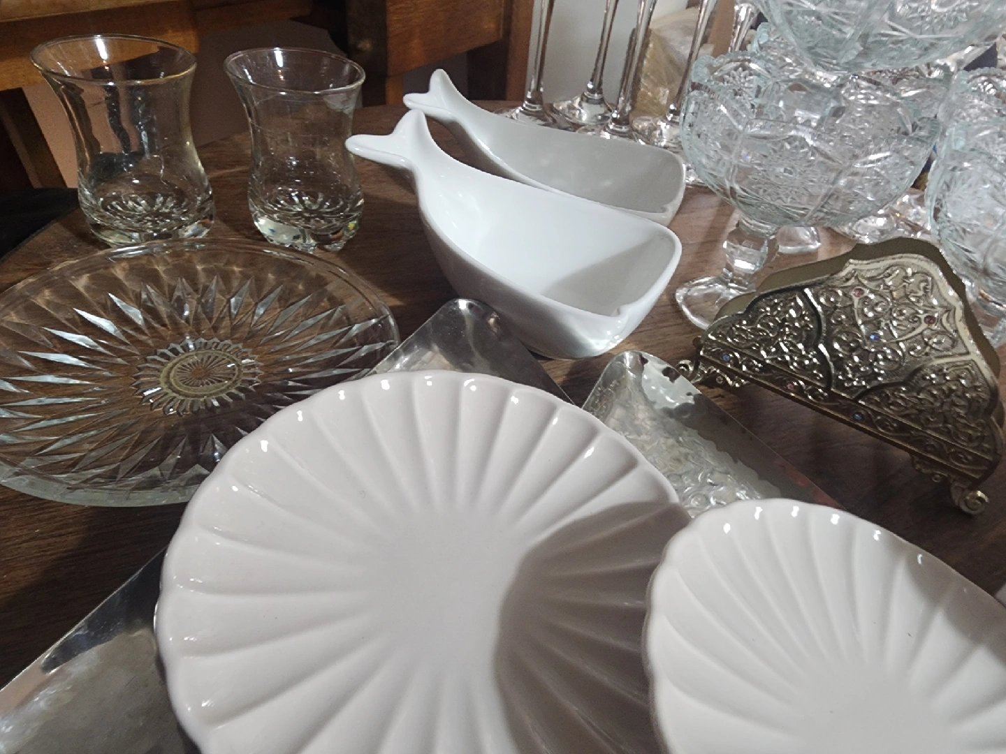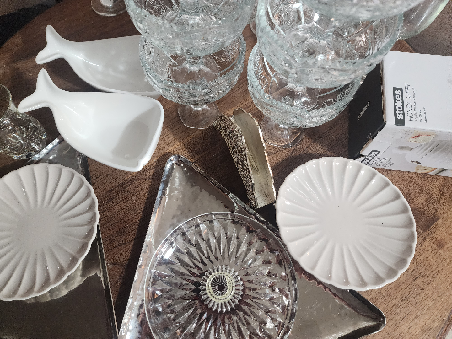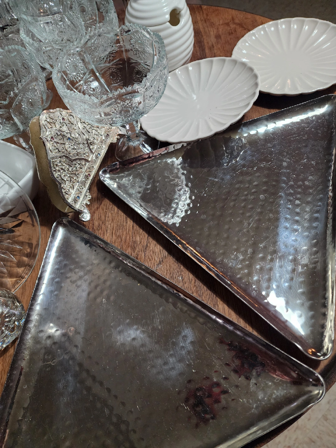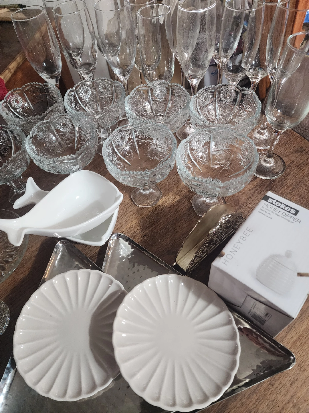 many silver and glass plates. Other items. all used once and NEW items.