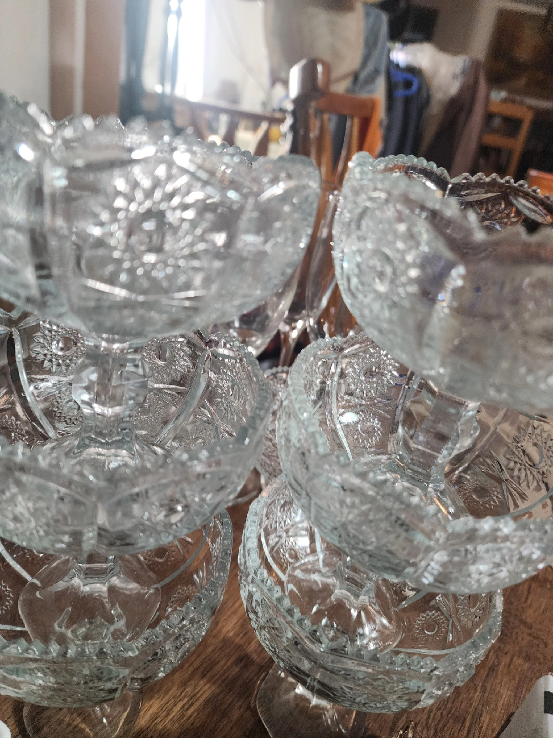 PARTY=13 tall glasses. 4 small, 8 Beautiful crystal dessert bowls.
