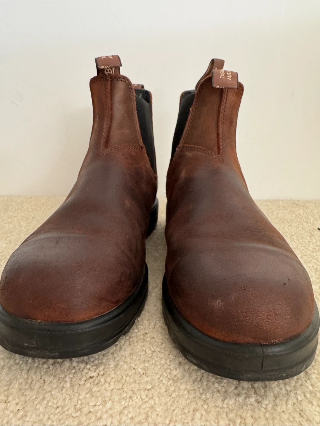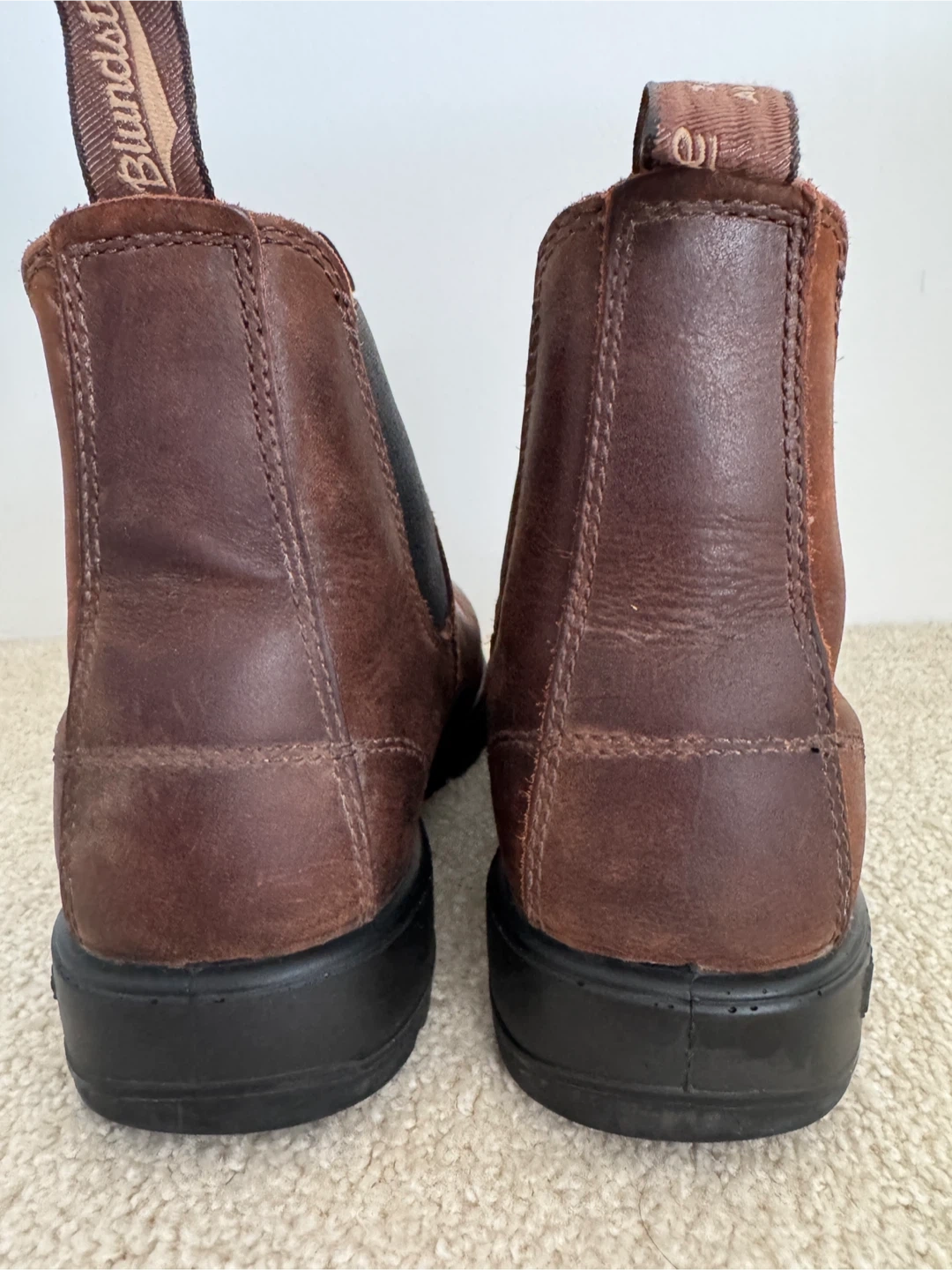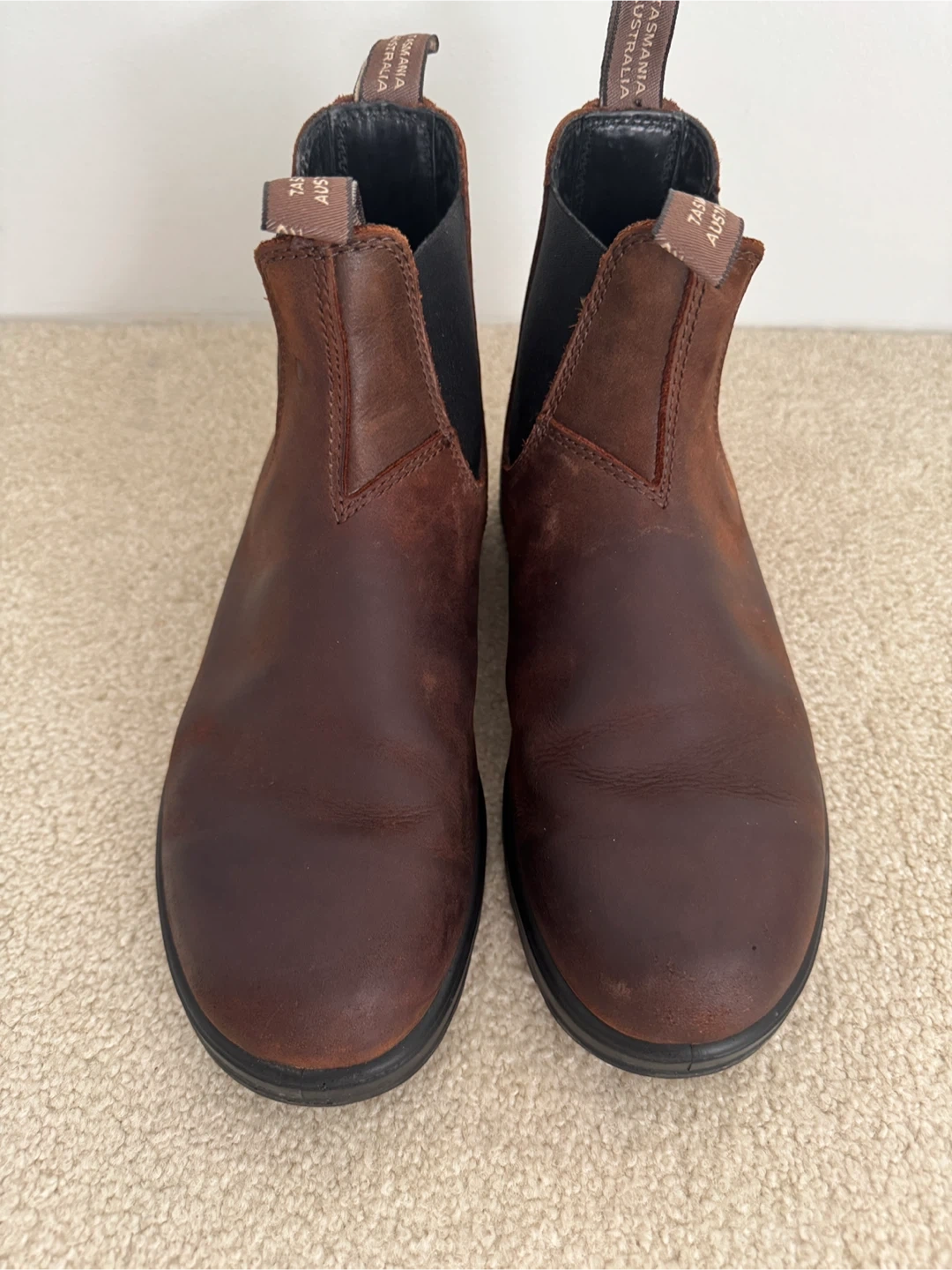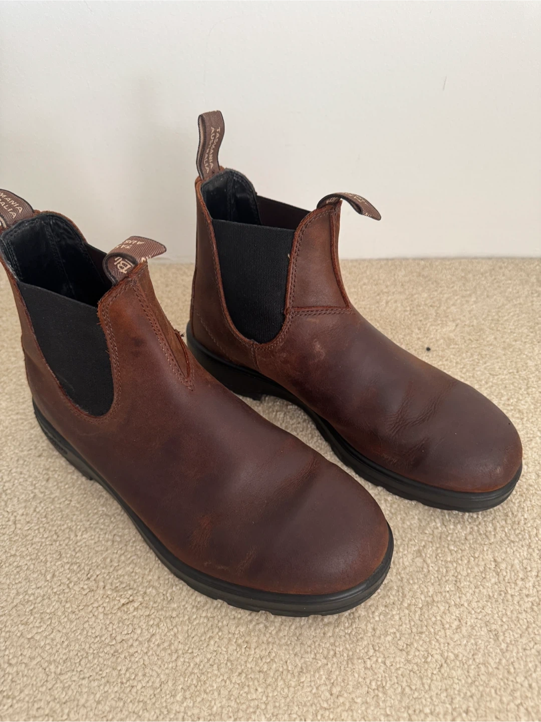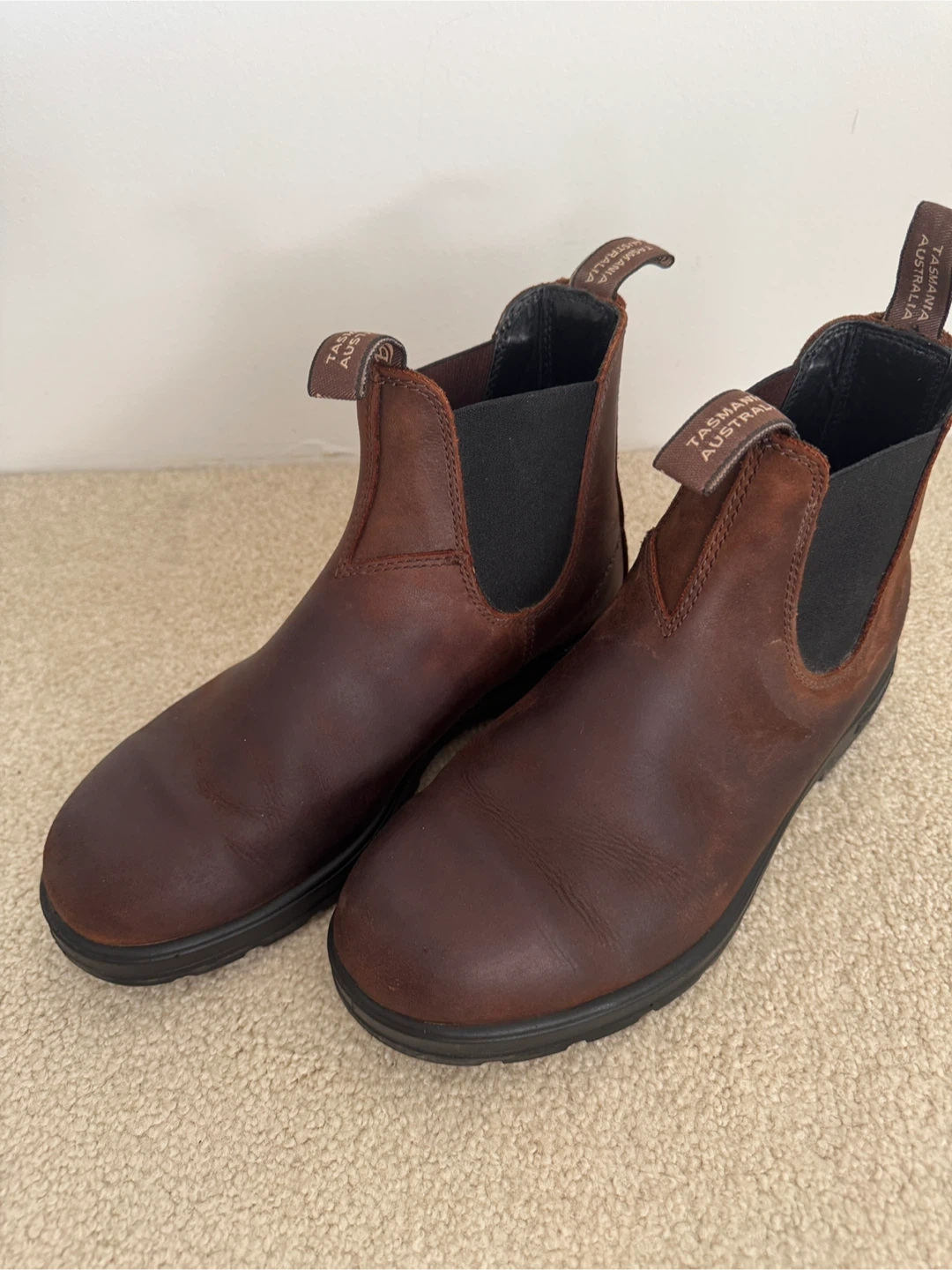 Selling a pair of Blundstone 500 Chelsea boots in a dark brown leather. These are super durable and comfortable for everyday wear. They show some signs of wear, but are still in good condition and have lots of life left! Worn less than 5 times. Size 8.5