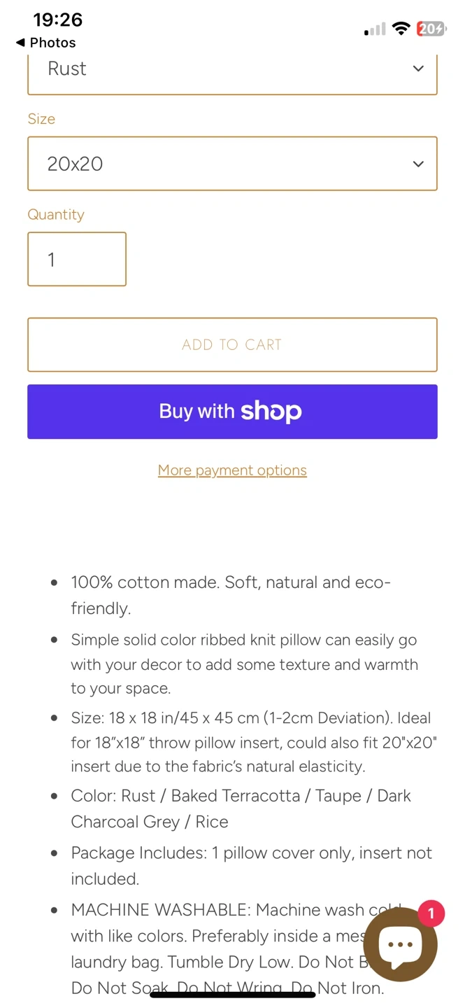 - Dimensions20” x 20”