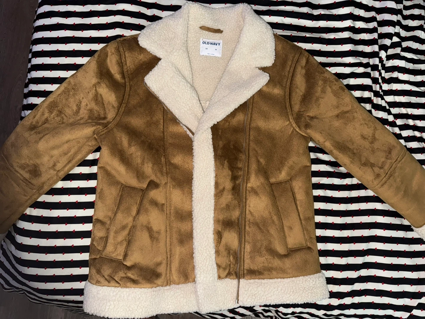 Selling an Old Navy jacket in size XS! It's a brown faux suede jacket with a cozy sherpa lining. Perfect for keeping warm and stylish