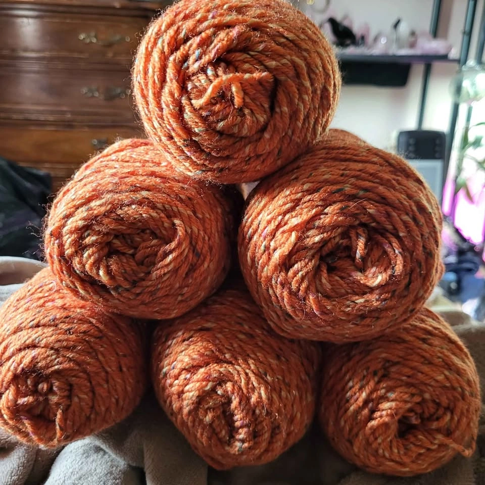 Vintage Discontinued Red Heart Fiesta Yarn in the colorway Autumn. There are a total of 4 skeins.