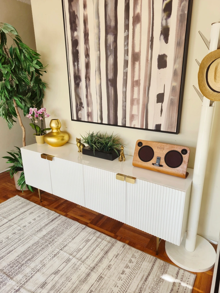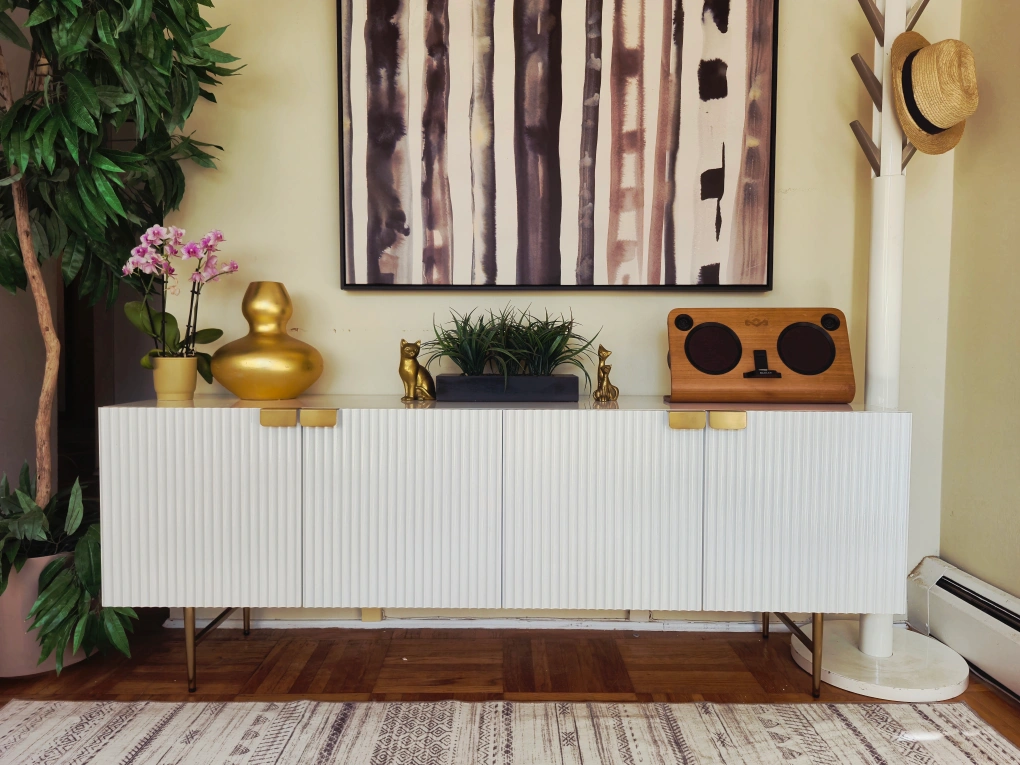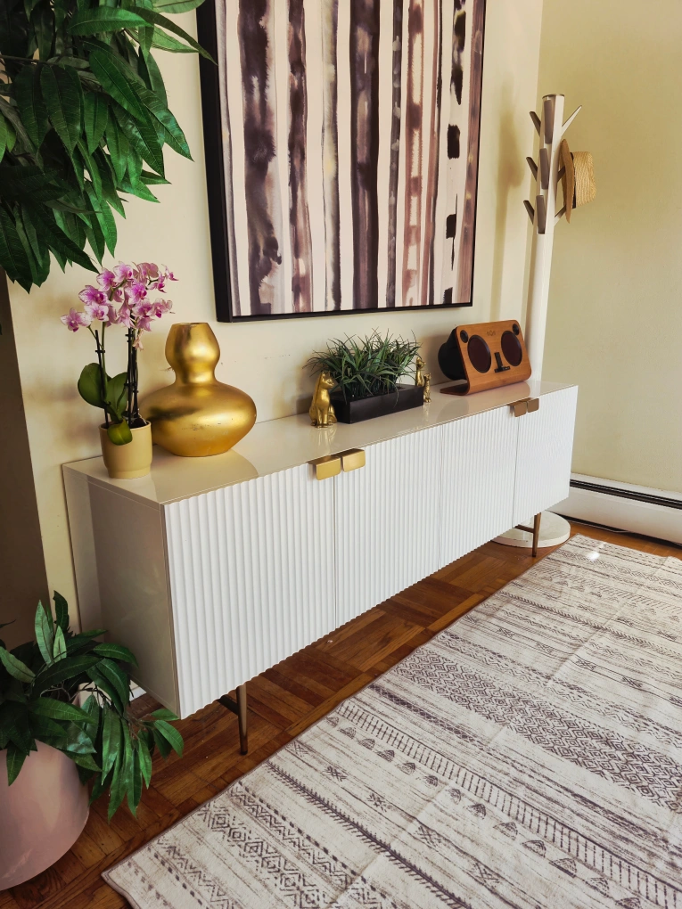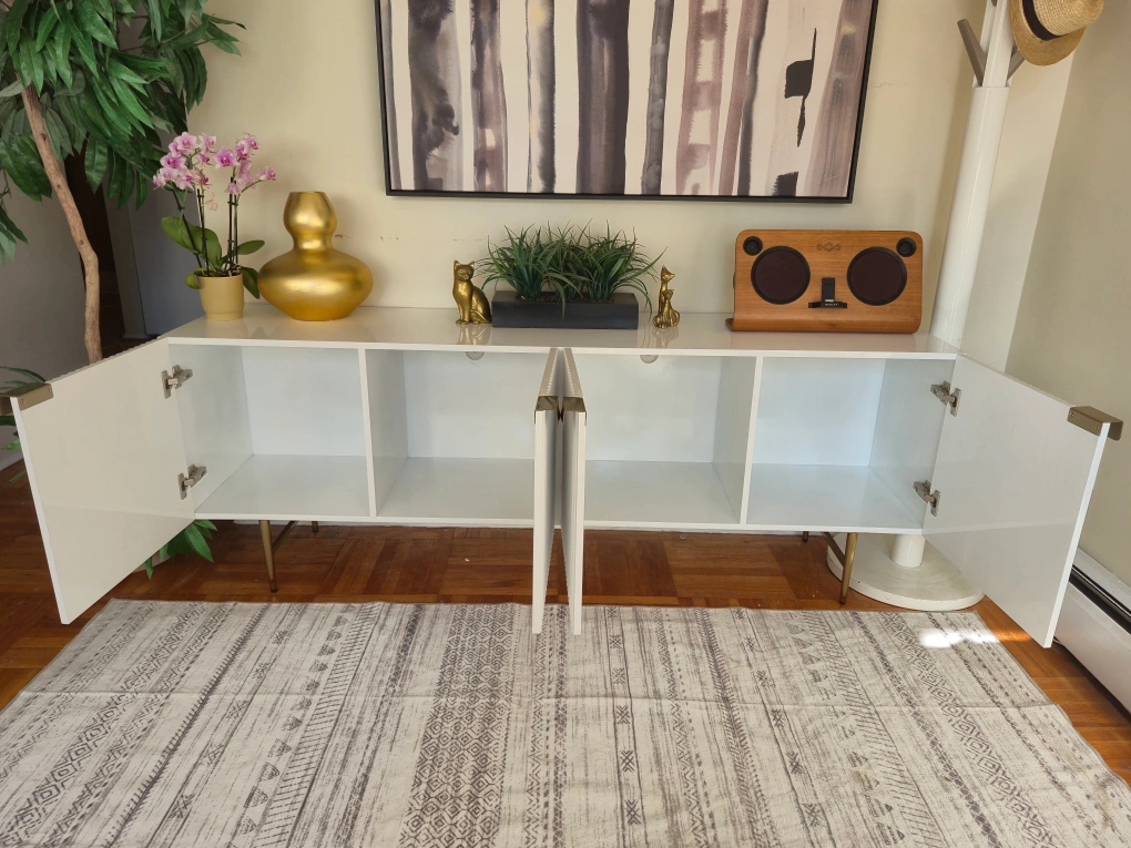 99Selling a lovely white Fluted lacquer credenza or sideboard! It features a modern design with gold accents on the handles and legs. It is brand new, was just taken out of the box and built for your convenience. Perfect for storage and display! Believed to be from cb2 or west elm. 71w x 17d x 26h Pick up in downtown Vancouver or delivery may be arranged for a reasonable fee. Priority is given to those who are able to pick up. Follow us on Instagram to enjoy an exclusive discount on select furniture items: https://www.instagram.com/vanvaluevintage Tags: retro vintage antique burl wood rosewood walnut brass gold copper 1920s 1930s 1940s sideboard credenza buffet server Hutch cabinet tv bench hallway table console table entertainment unit living room dining room mcm mid century modern furniture retro vintage vinyl records lps credenza sideboard server Hutch 1950s 1960s 1970s sixties pioneer techincs rental modern Contemporary