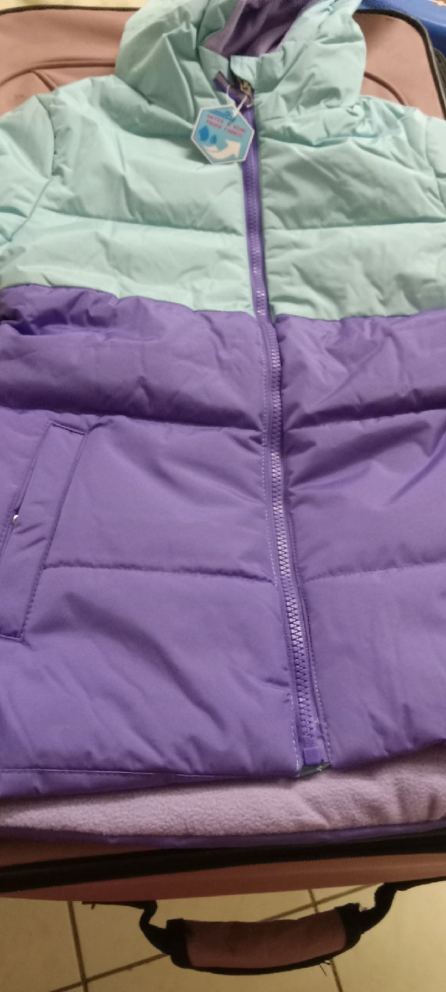 Keep your little one warm with this cute puffer jacket from Whales Tail Outerwear! It's a size 10/12 and features a stylish two-tone design in light blue and purple. The jacket also has a water and wind resistant fabric, perfect for those chilly Canadian days!