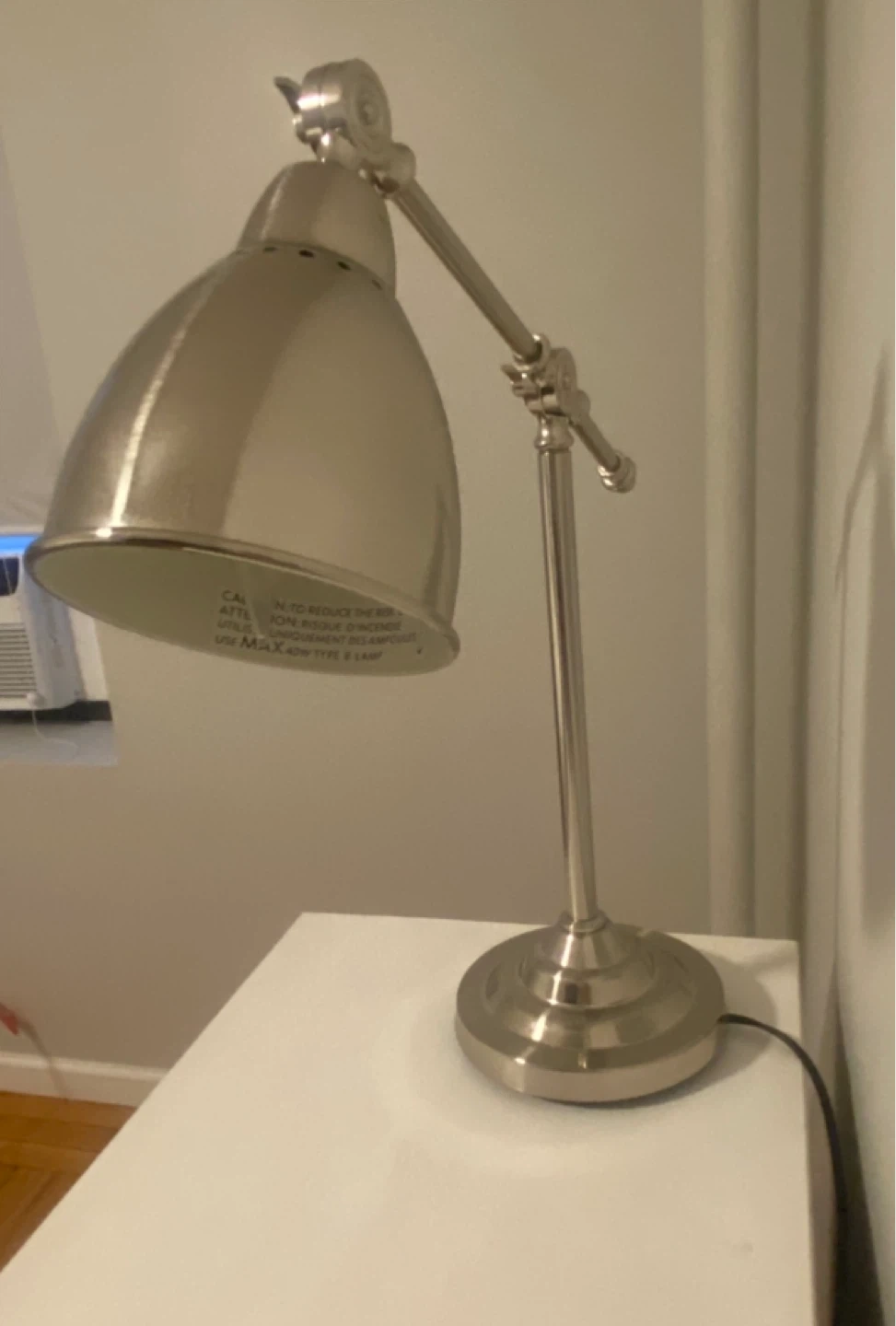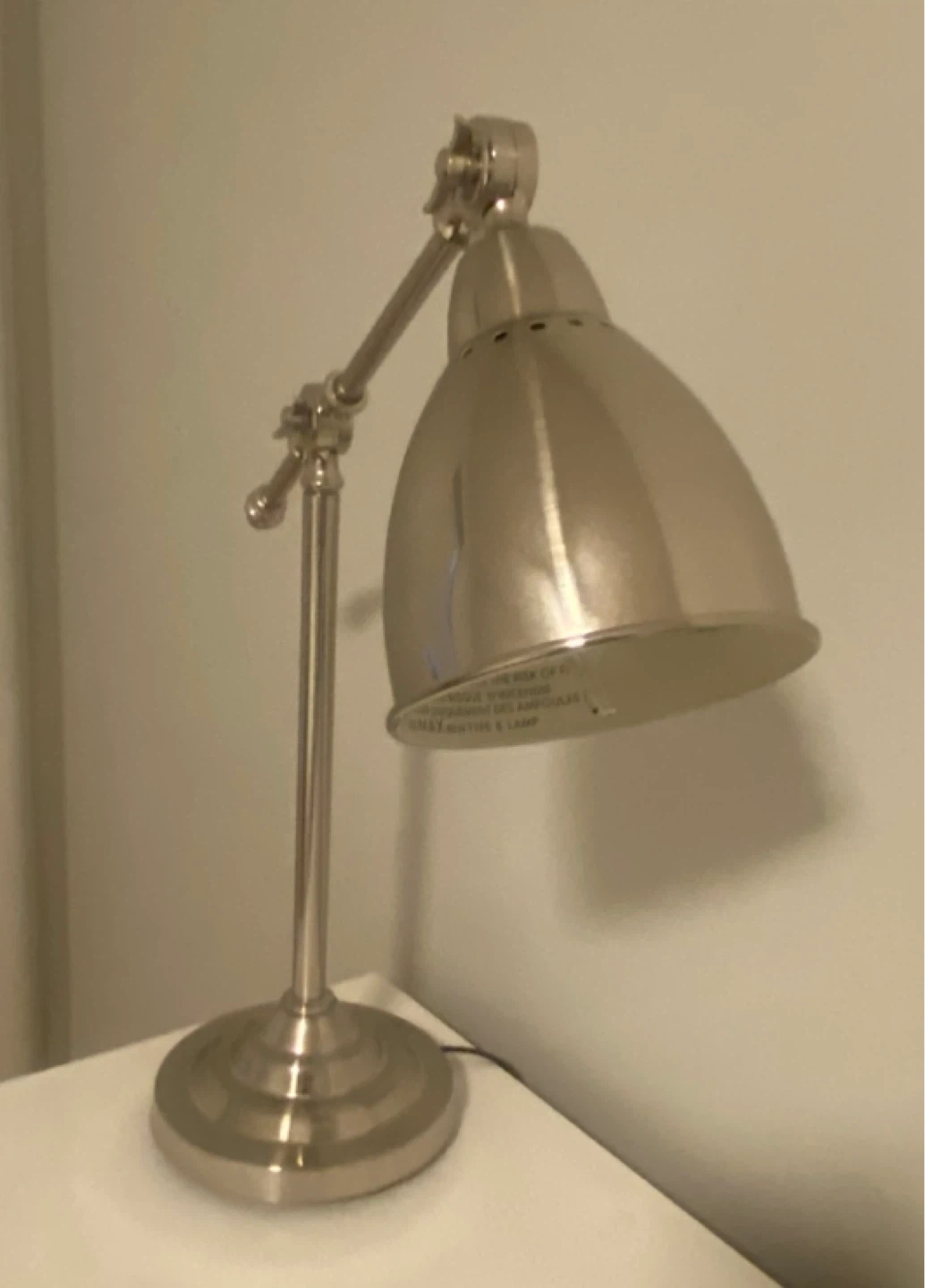 It's in great condition and perfect for a desk or bedside table. It has a classic design and adjustable arm. Small switch on cord.