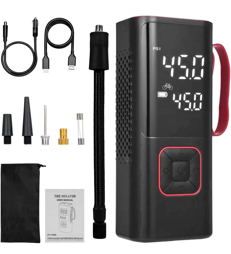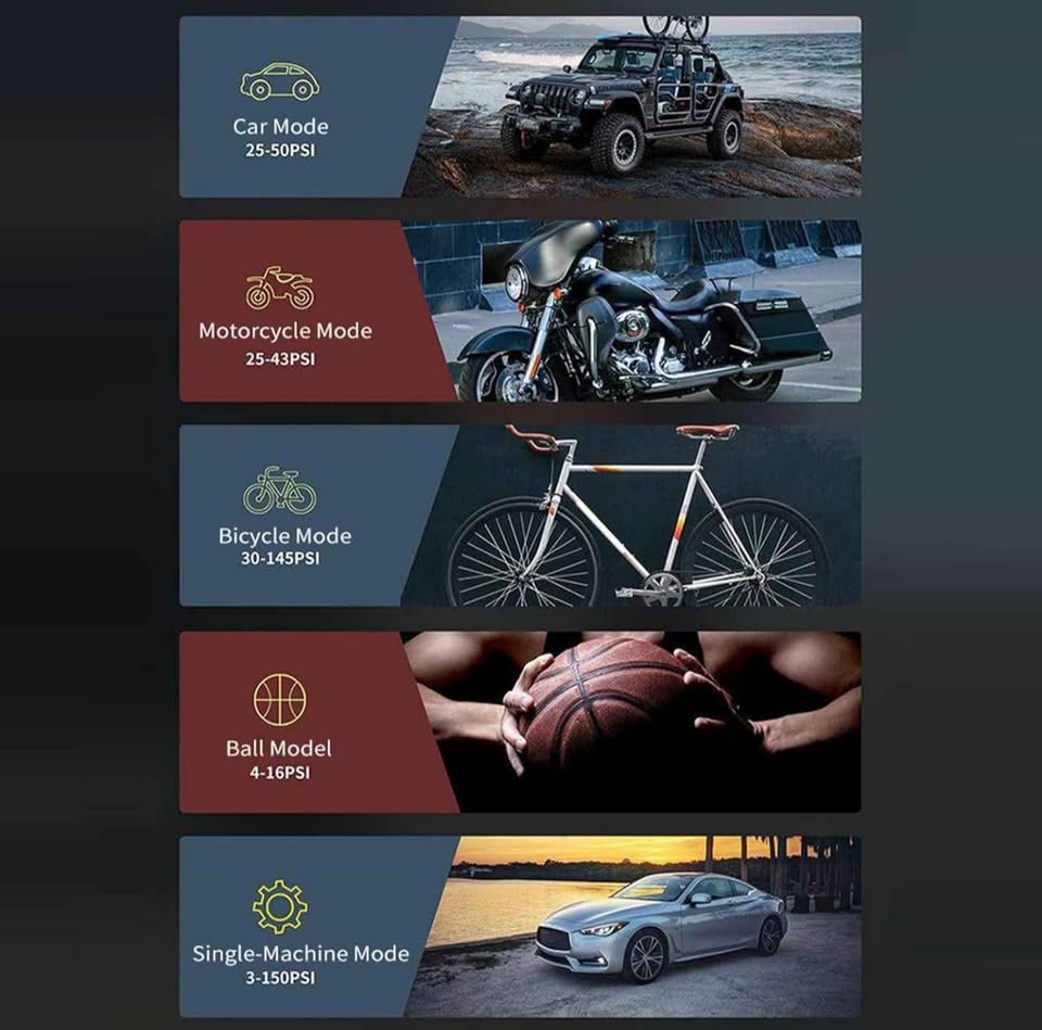 Inflates a car flat tire under 5 minutes and top up under 60 seconds.
