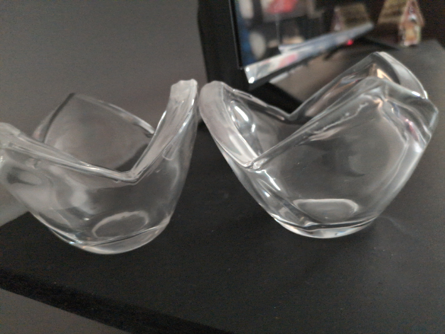 Selling a set of two clear glass decorative bowls! They're in great shape and ready to add a touch of elegance to your home. They were wedding gifts that were never used.