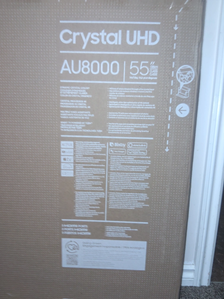 Selling a Samsung Crystal UHD AU8000 55-inch smart TV. It's in great shape and ready for a new home! This TV boasts dynamic crystal colour and a crystal processor 4K for stunning visuals. It also has multiple voice assistants built-in. Get ready to enjoy your favourite shows and movies on this amazing TV, still almost new and in box.
