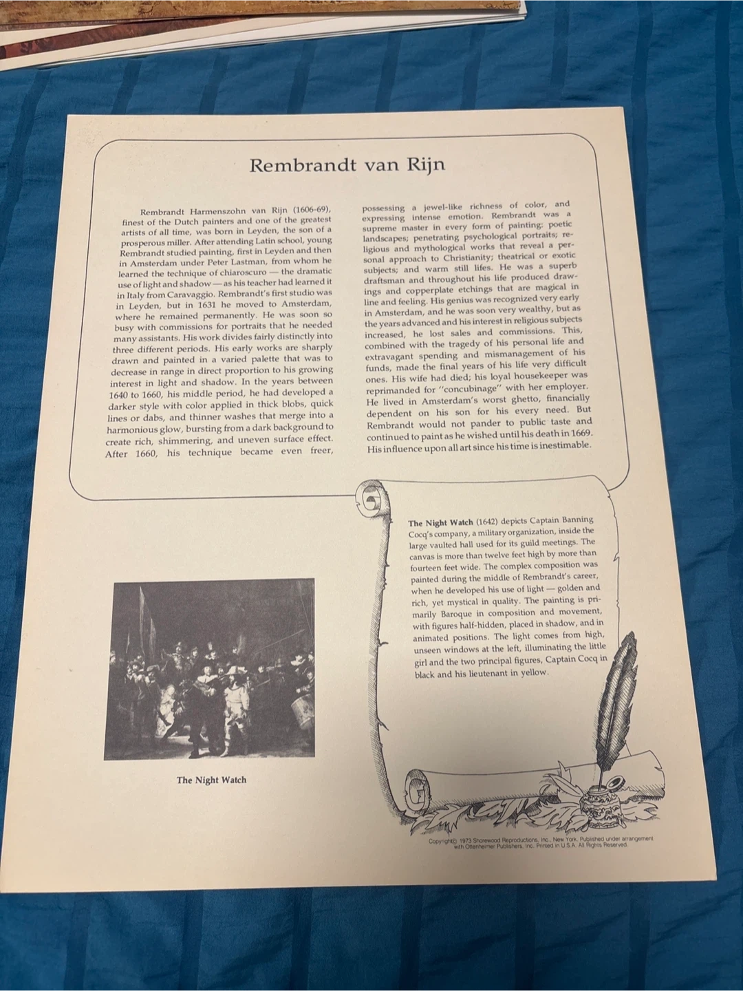 Selling a print of Rembrandt van Rijn's famous painting, "The Night Watch"! It's a great piece for art lovers or anyone looking to add a touch of classic art to their home. The print captures the detail and drama of the original painting.