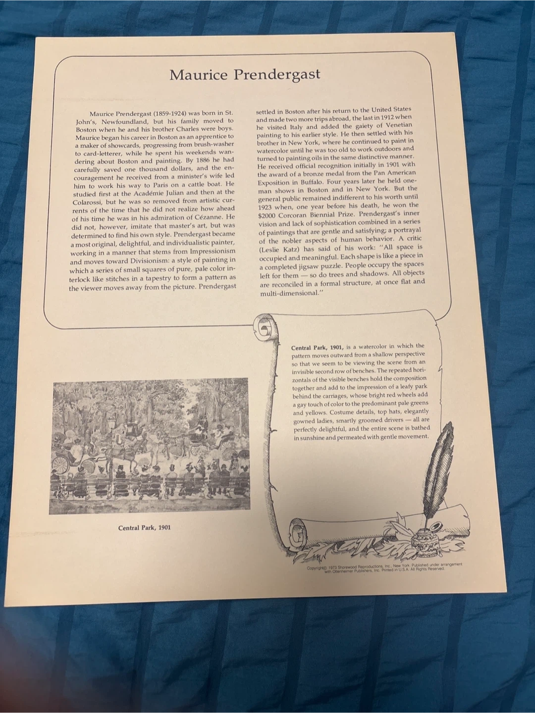 Selling a print of Maurice Prendergast's artwork. It's a beautiful piece that would look great in any home. The print captures Prendergast's unique style, blending Impressionism with a touch of abstraction. It's a wonderful addition for art lovers