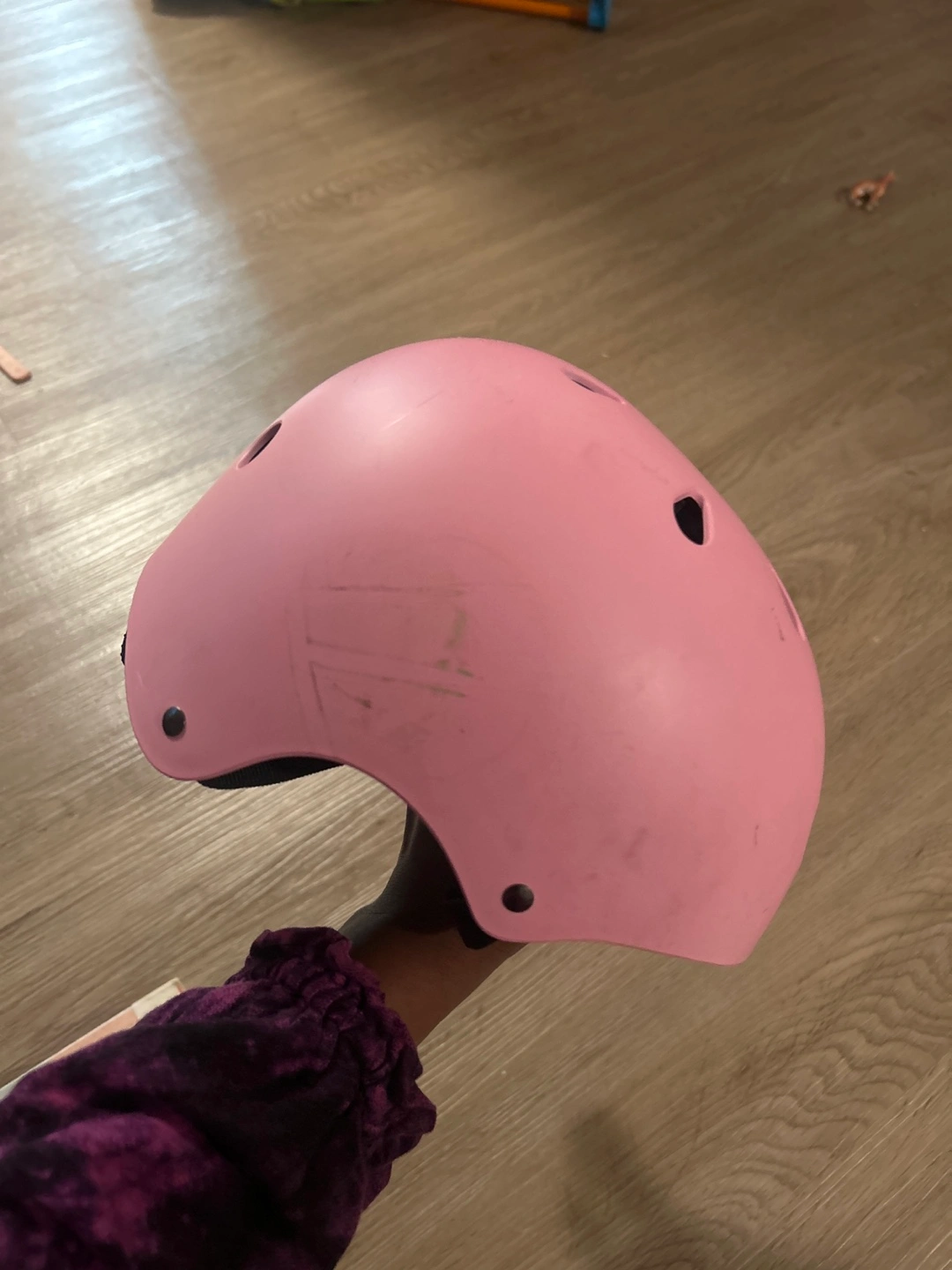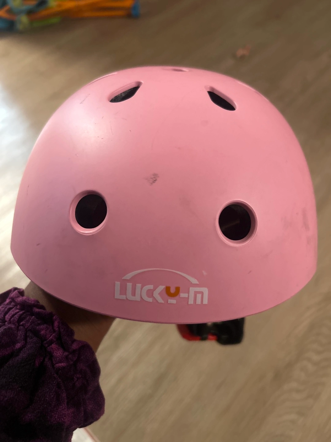 Selling a pink Lucky-M helmet in size small! It has some scratches, but is still in good condition and ready to protect your little one. Perfect for skateboarding or rollerblading!
