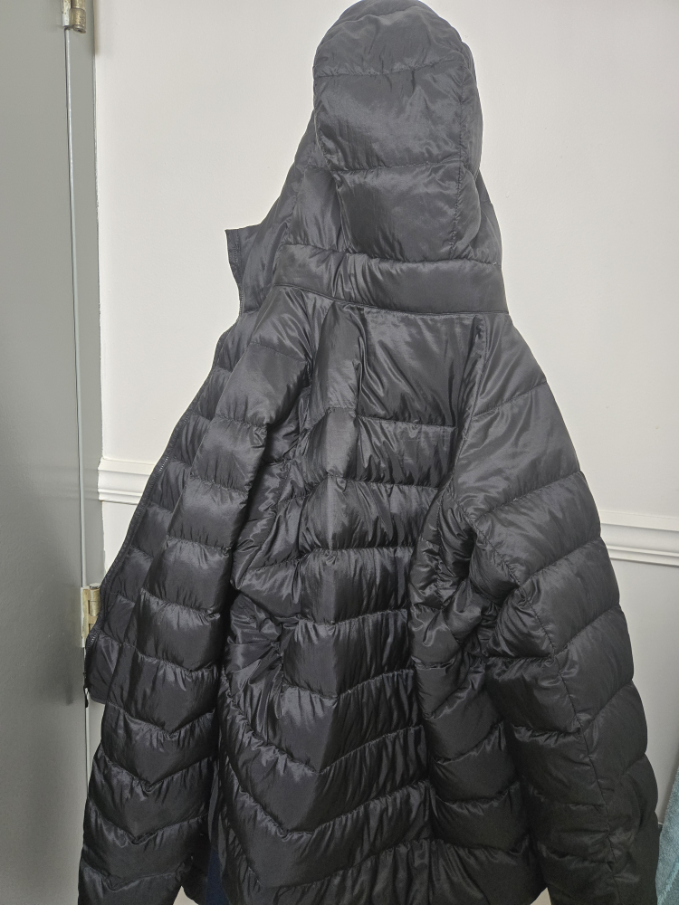Selling a gently used Uniqlo Ultra Light Down Jacket in black! It's a size M and made with a nylon face and down filling. Perfect for layering or wearing on its own during milder weather. It's lightweight and easy to pack away too!