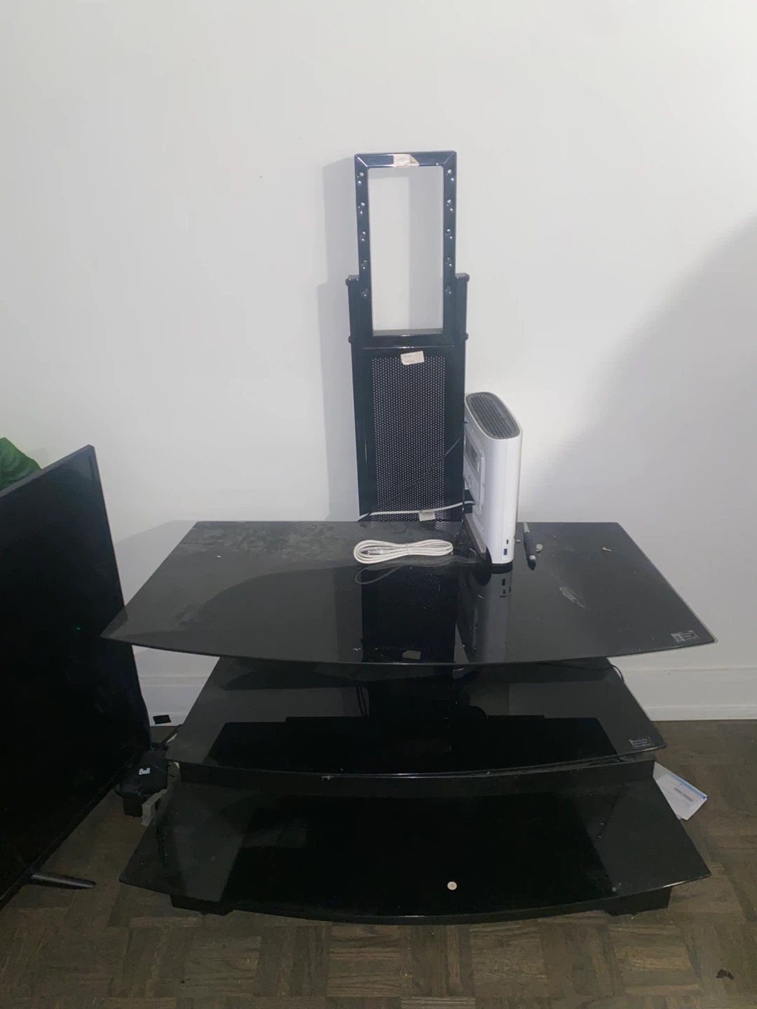 I’m selling this tv stand - it’s about 3ft tall , glass tops that can be rearranged. Tv not included