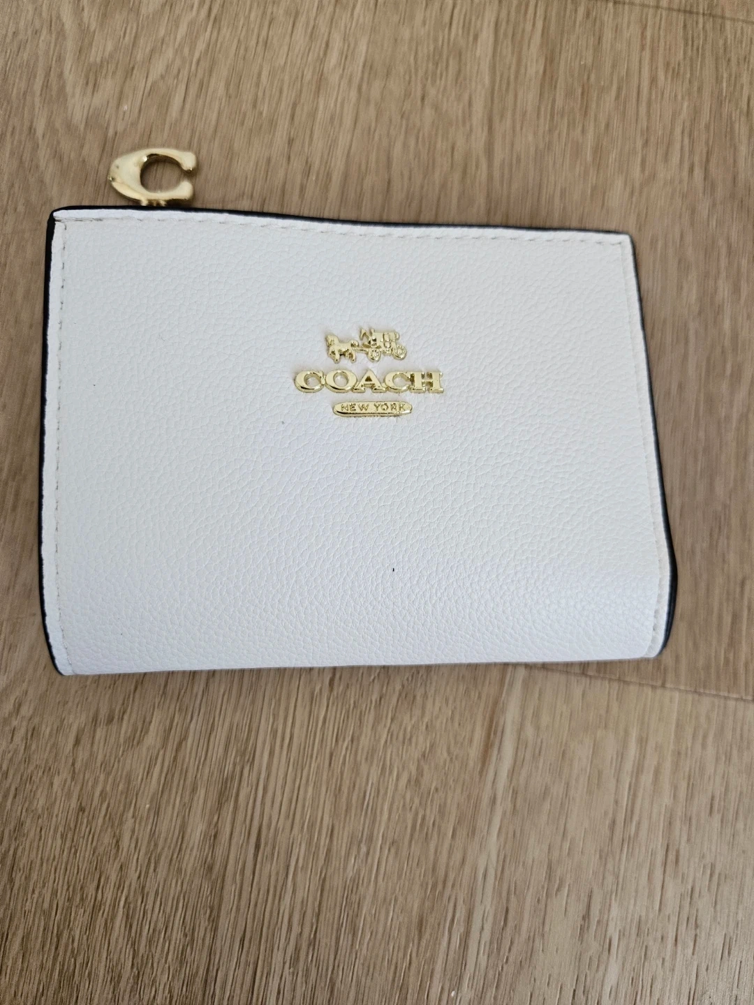 This is a Coach medium zip-around wallet in black with the signature "C" pattern. It's a compact and stylish accessory for your essentials. Made with durable materials for everyday use.