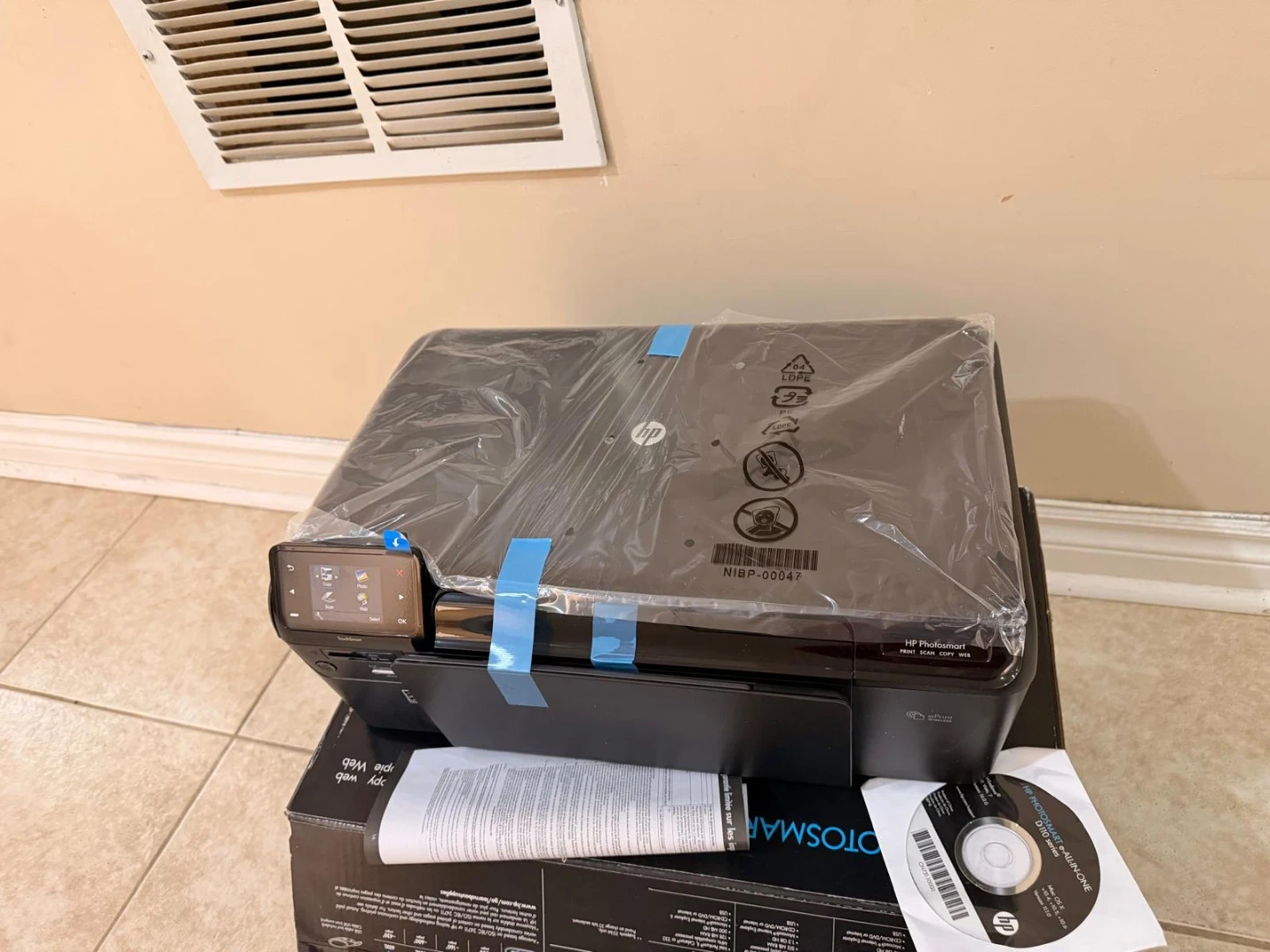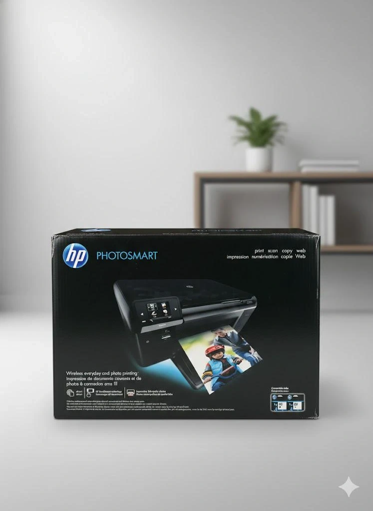 This is a rare find! Up for sale is an HP Photosmart D110 All-in-One printer that has never been used. As you can see in the photos, the original blue factory shipping tape and protective plastic are still on the unit.