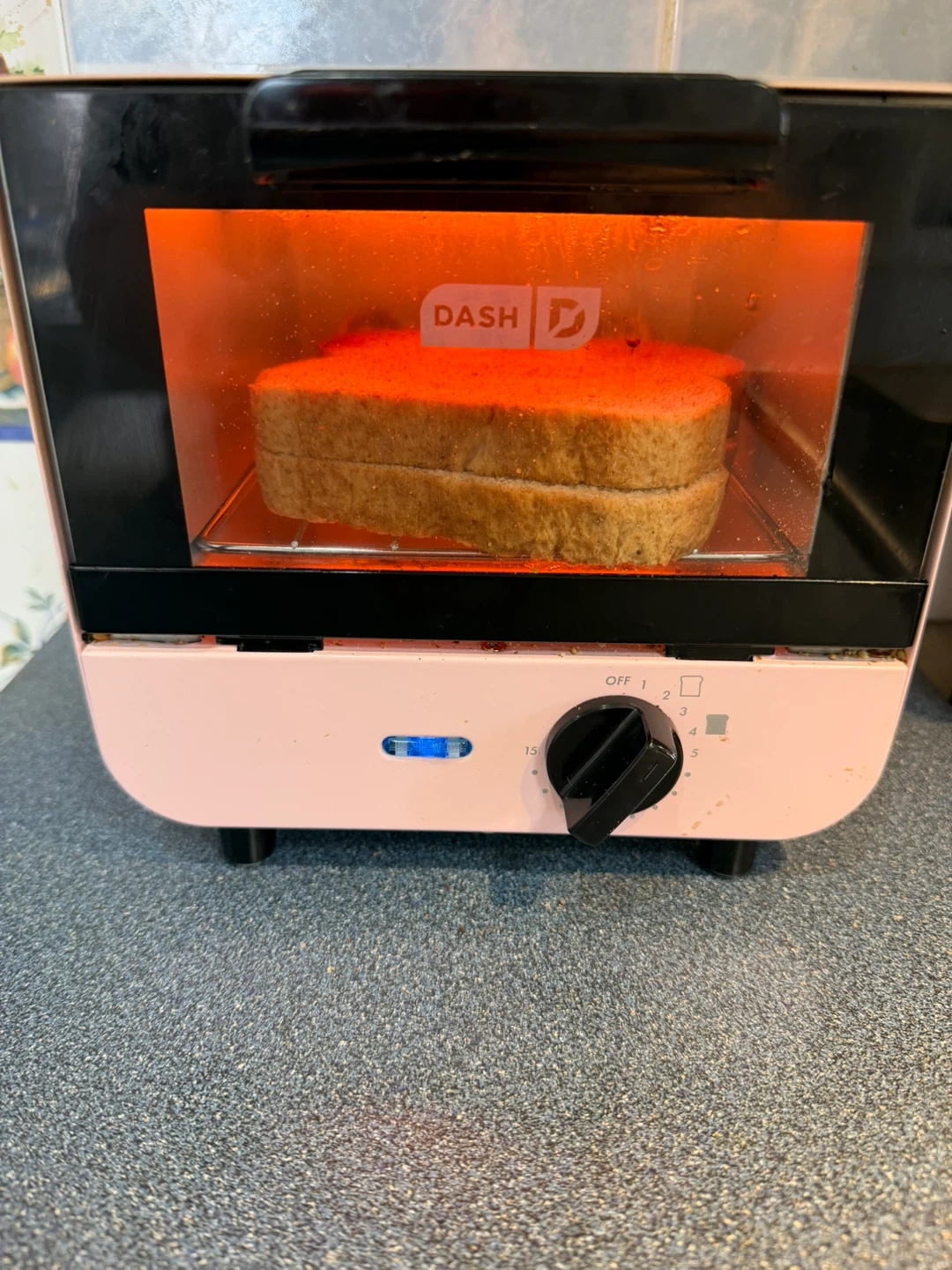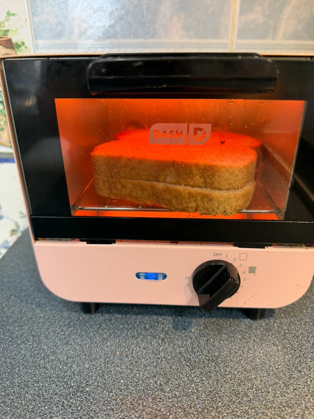 This pink Dash toaster oven is perfect for toasting up to two slices of bread at a time. It has multiple settings for your preferred crispness. A great addition to any kitchen counter!