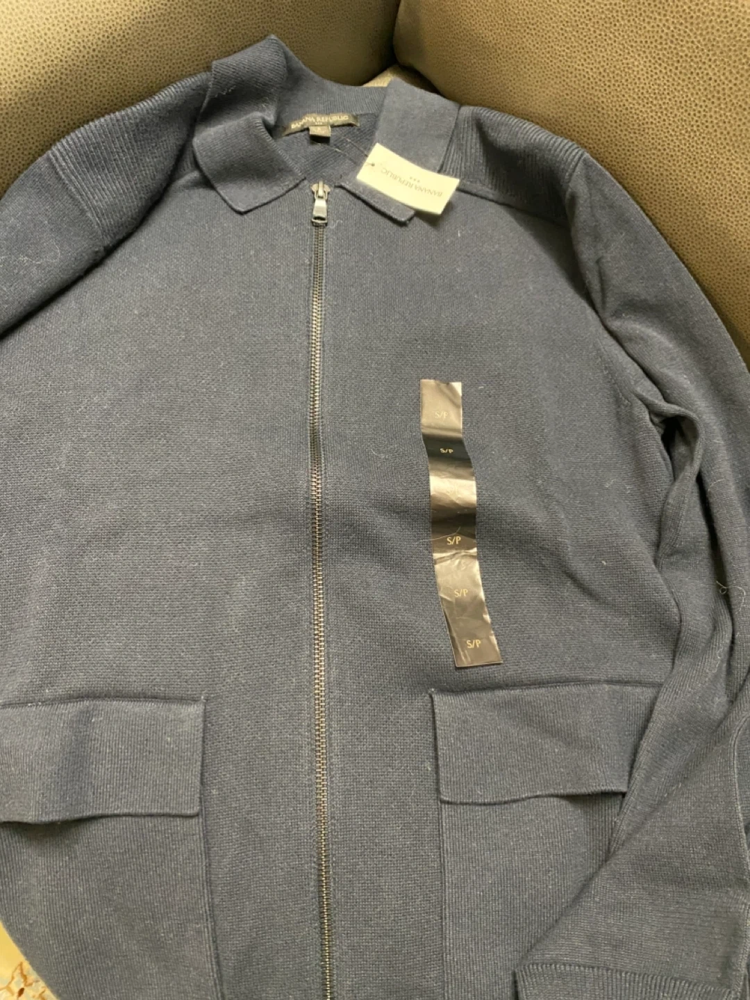 Classic and versatile navy zip-up cardigan from Banana Republic.