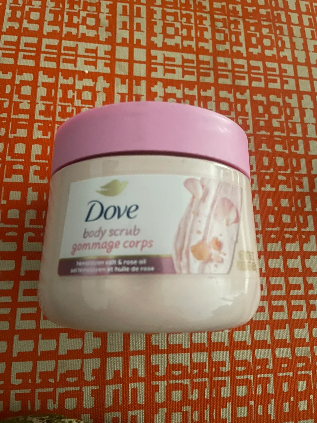 Dove nourishing body scrub. Leaves skin feeling soft and cleansed. Contains rose oil and a hint of rose petal. Exfoliates and nourishes skin.