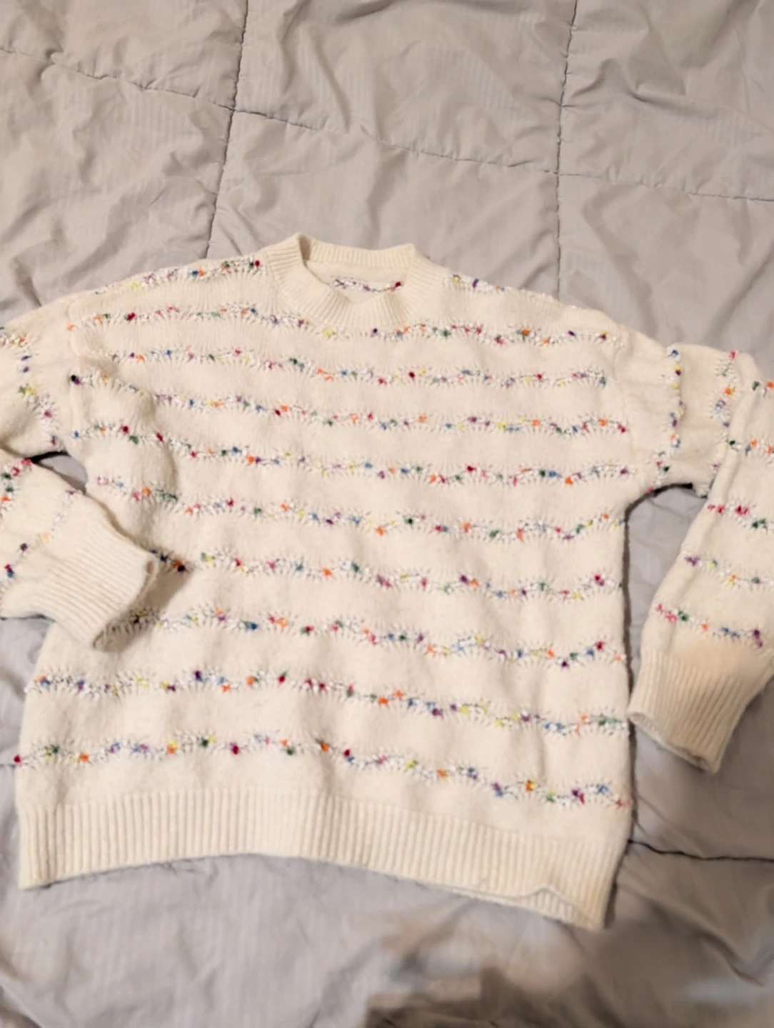 White Sweater with Colorful Stitches🥕