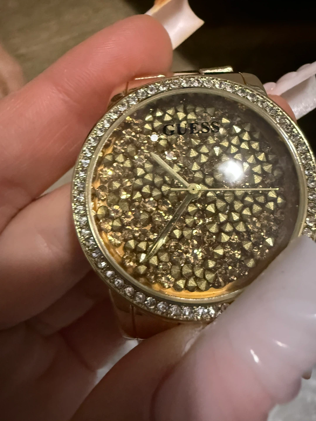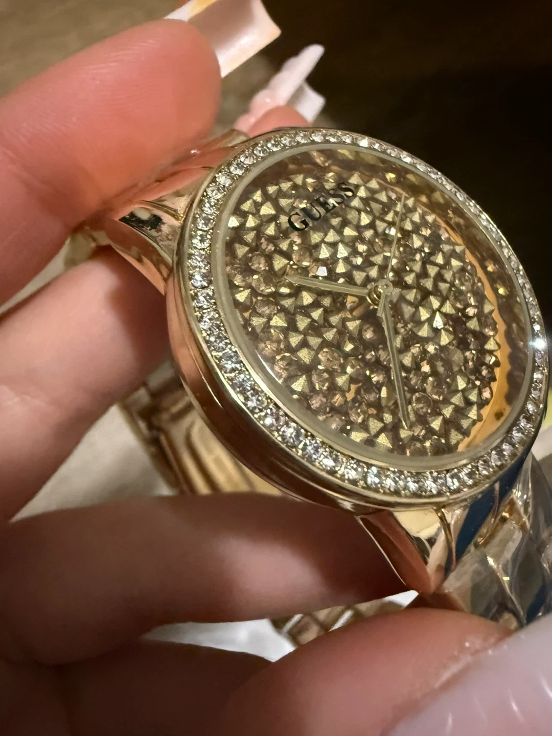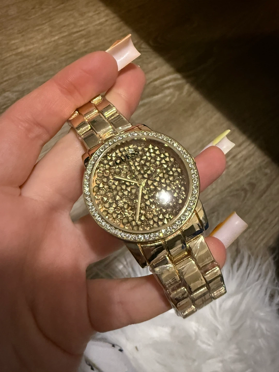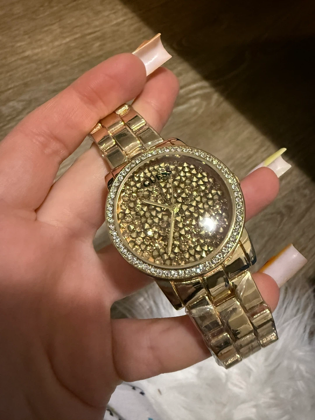 Selling a beautiful Guess women's watch in gold tone! It features a unique dial design with crystal accents around the bezel. It's in great condition and ready to add some sparkle to your wrist