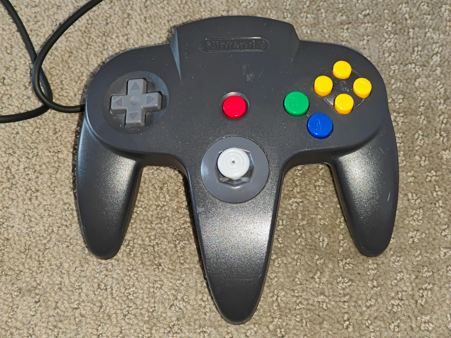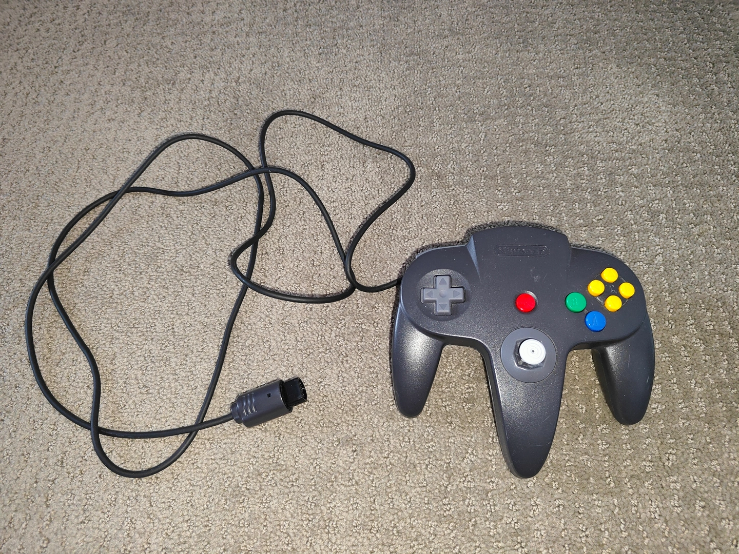 174NOTE: Price is firm. I am selling a N64 OEM Nintendo 64 Controller in Dark Grey colour in used, tested, and working condition. All the buttons and joystick feel in good working condition. Model Number: NUS-005 Comes from a pet and smoke-free environment. Pickup in Mount Pleasant (NW Calgary)