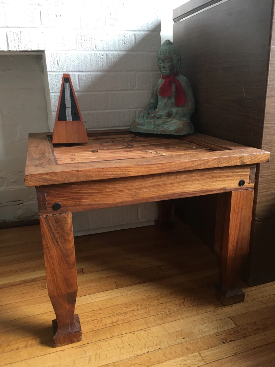The top glass is missing but still functional. I can give you a smaller glass to put your mugs etc.