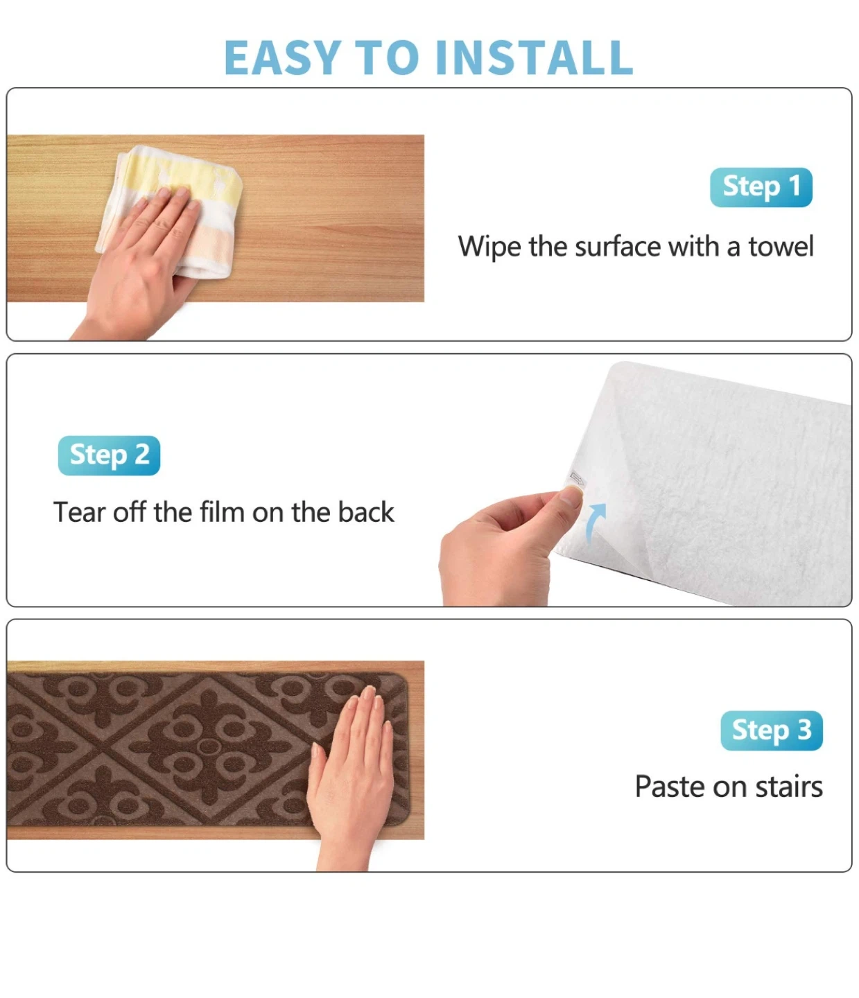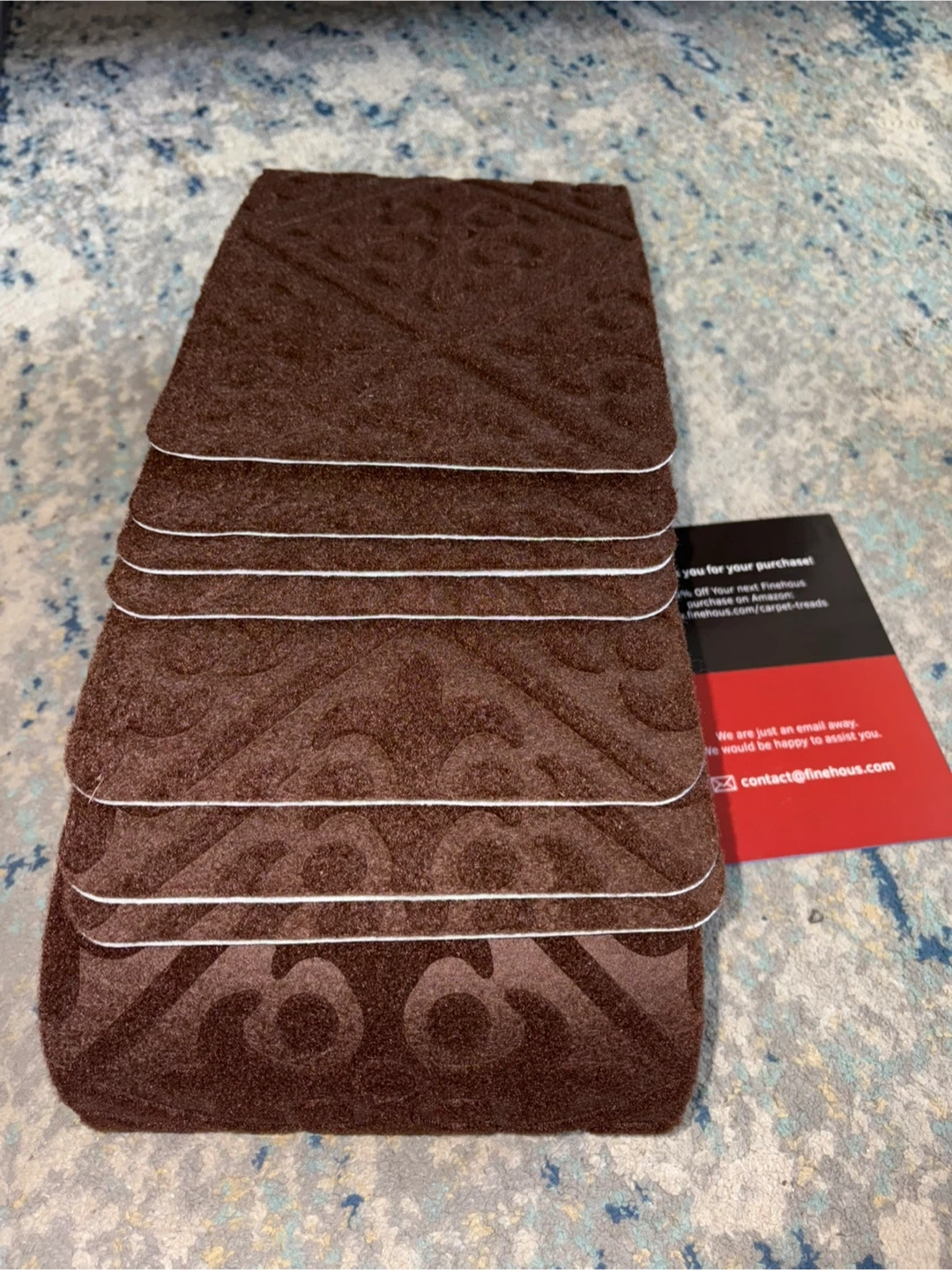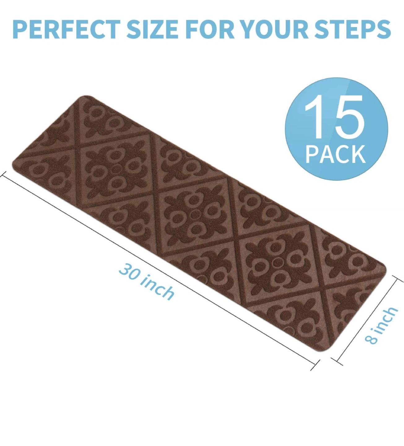 484Brand new Non-Slip Carpet Stair Treads for Wooden Steps,Slip Resistance Safety Runner Mat for Pets,Elders and Kids,Non-Residue Self Adhesive Stair Treads Embossed Brown 8" X 30" Brown, Set of 15 No holds no delivery Price is Firm