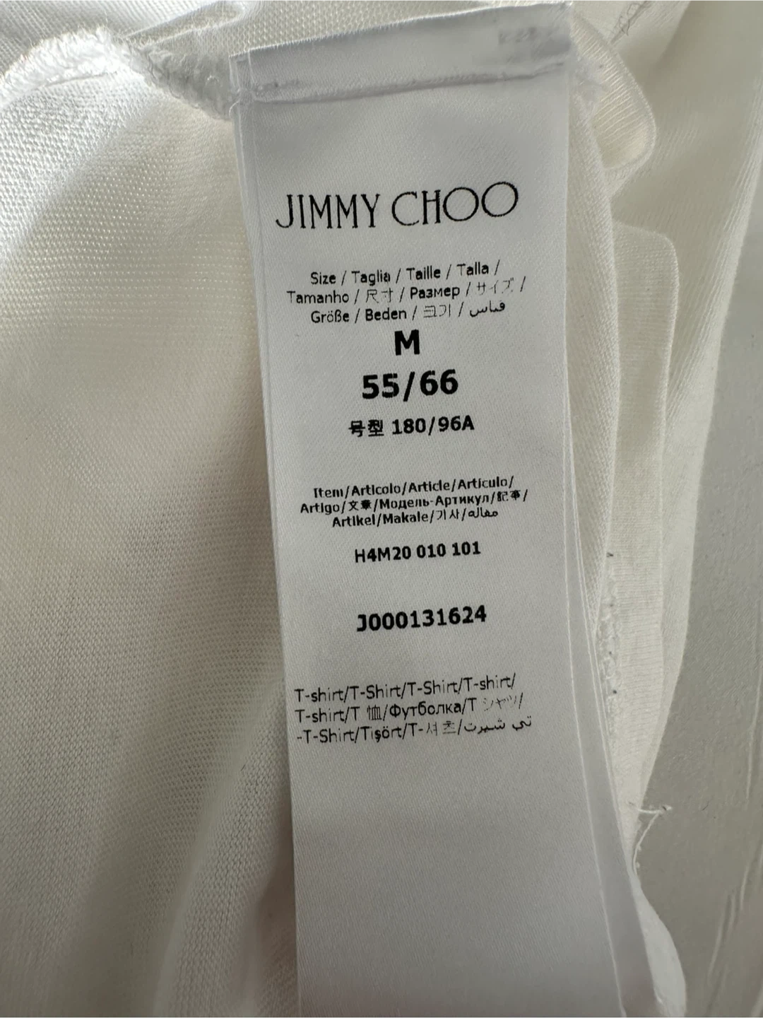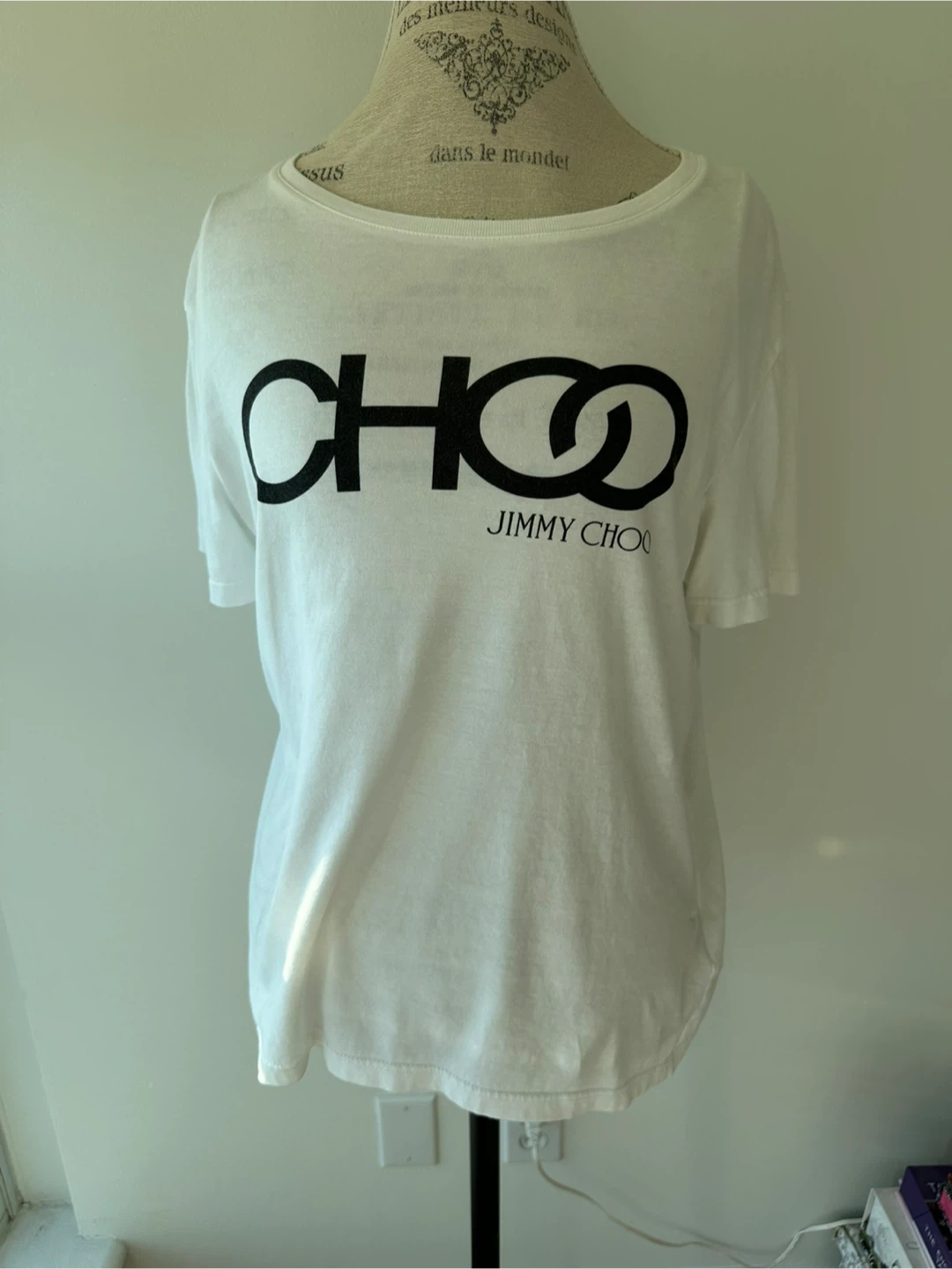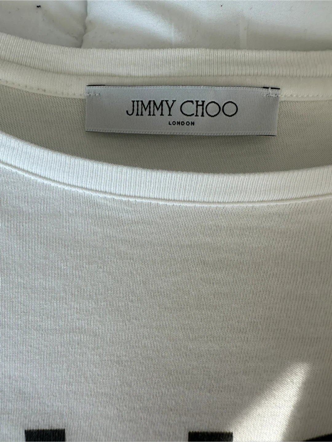Selling a white Jimmy Choo t-shirt! It features the iconic Jimmy Choo logo in black on the front. A simple and stylish piece for any wardrobe!