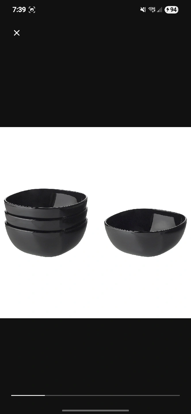 87$10 for 4 bowls. Selling a set of 4 black bowls from IKEA! They're in great shape and perfect for everyday use. Add a touch of modern style to your kitchen with these sleek bowls