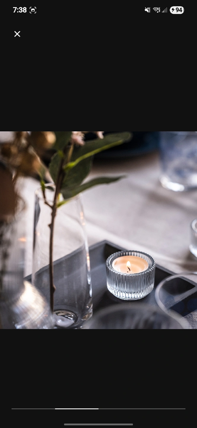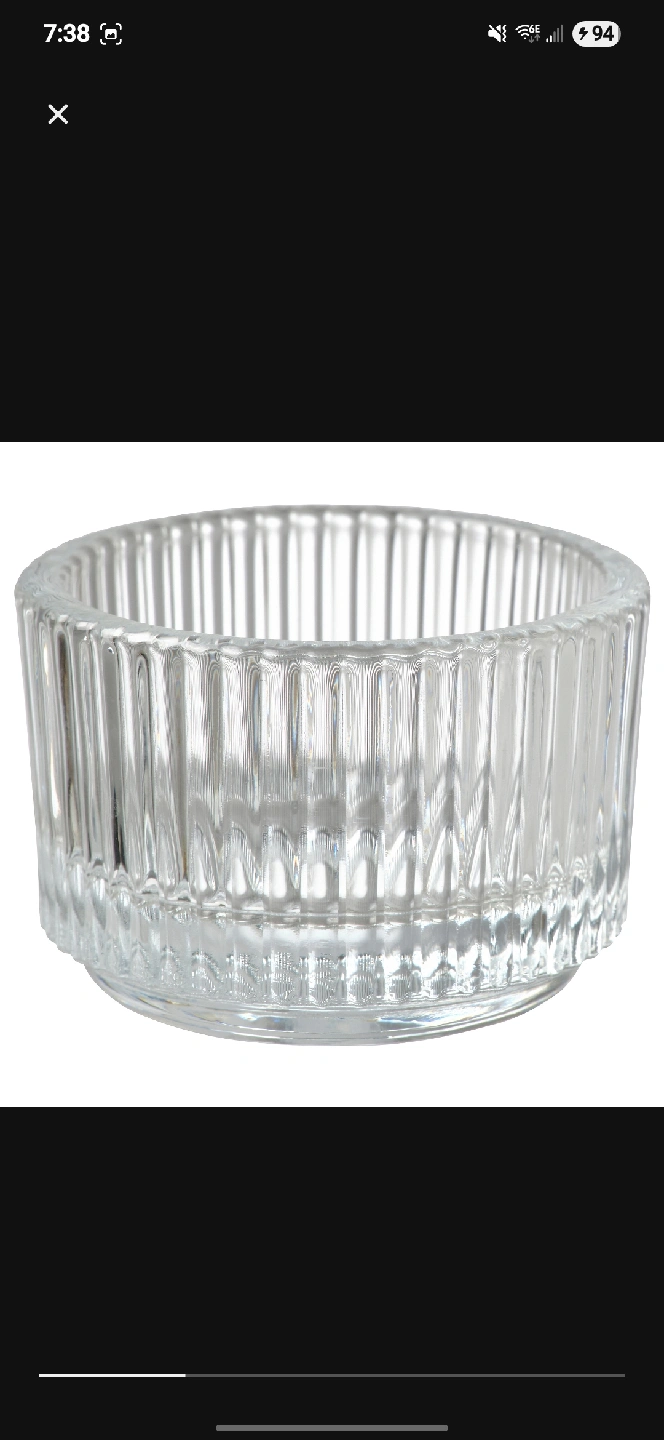 87$0.5 each I have 6 if these. Here's a lovely clear glass candle holder with a ribbed design. It's in great condition and ready to add a touch of elegance to your space!
