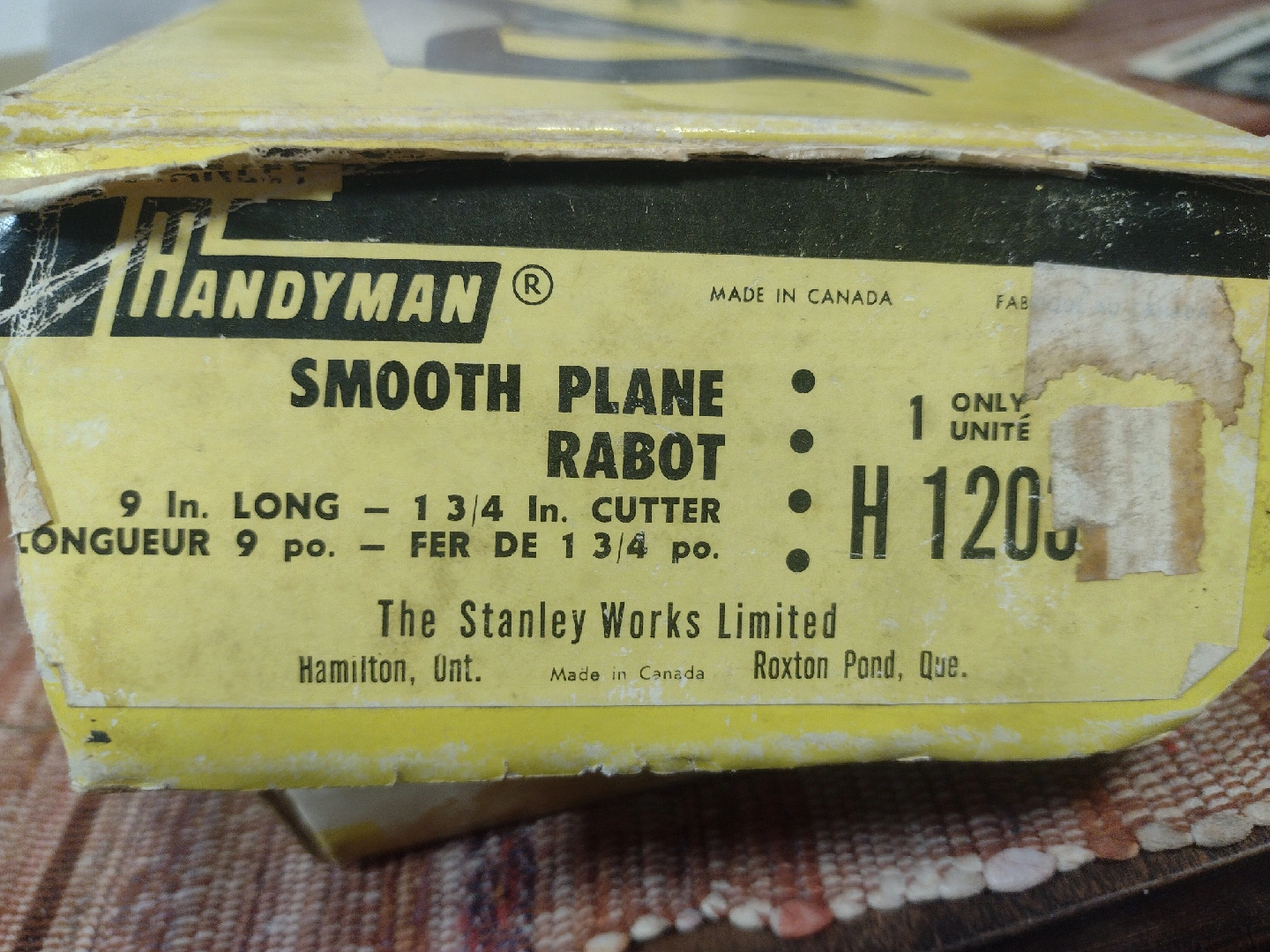 Handyman Smooth Plane. It comes with the original box and original Stanley Plane Facts booklet. The plane is 9 inches long with a 1 3/4 inch cutter. Made in Canada by The Stanley Works Limited.