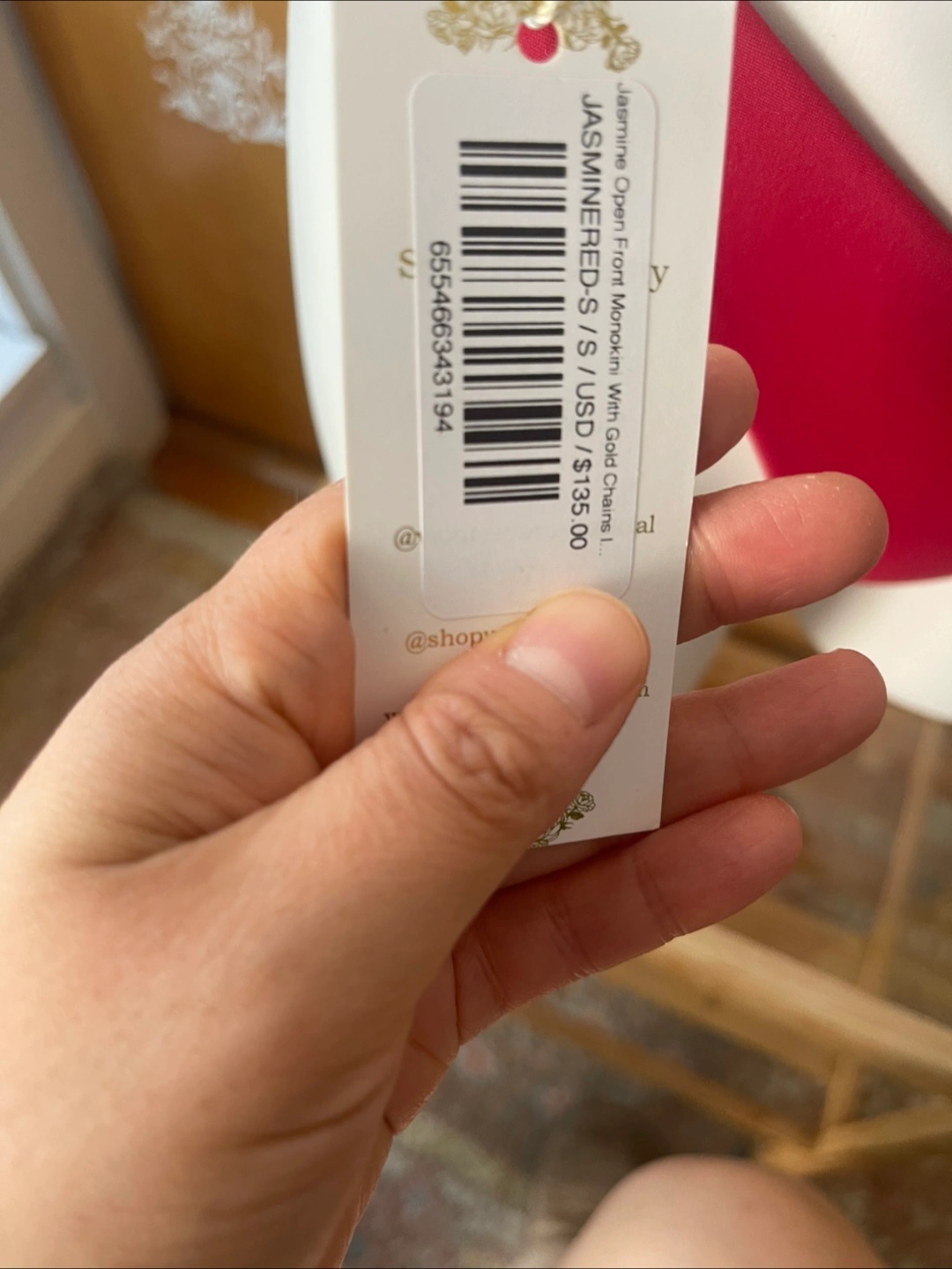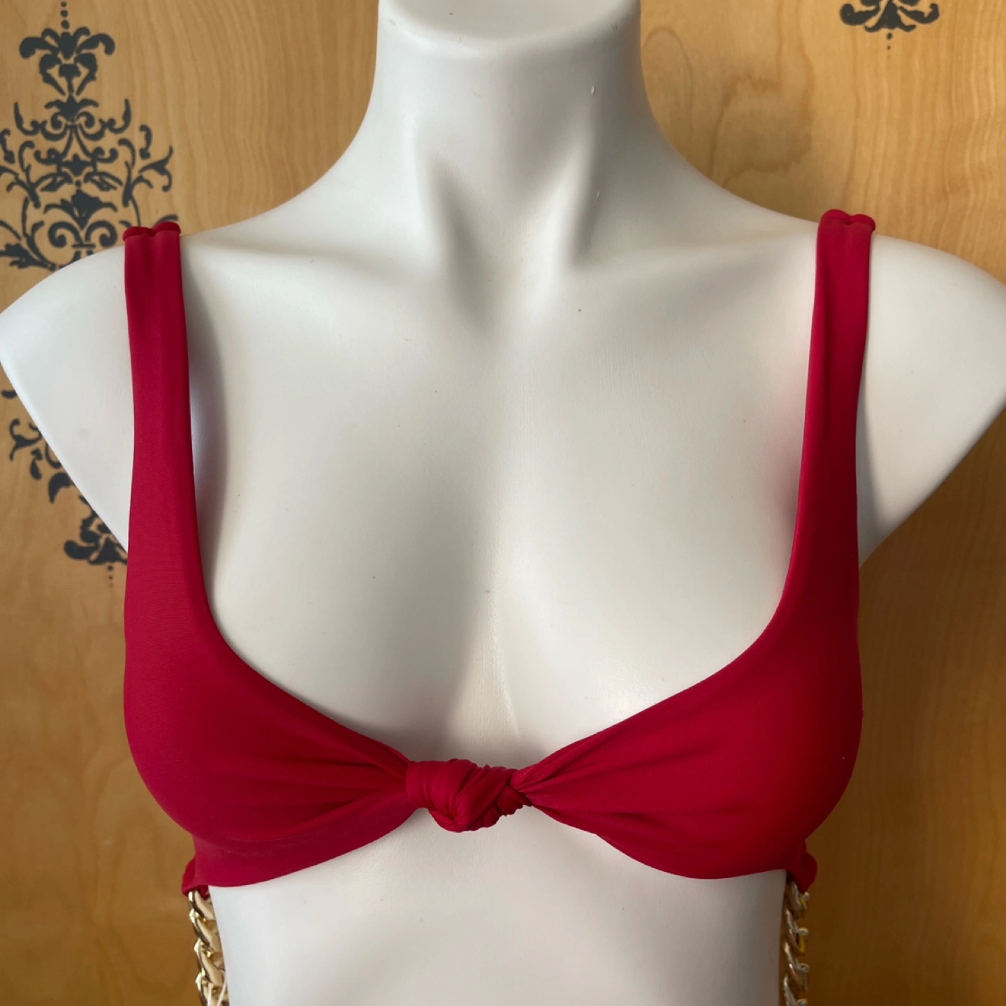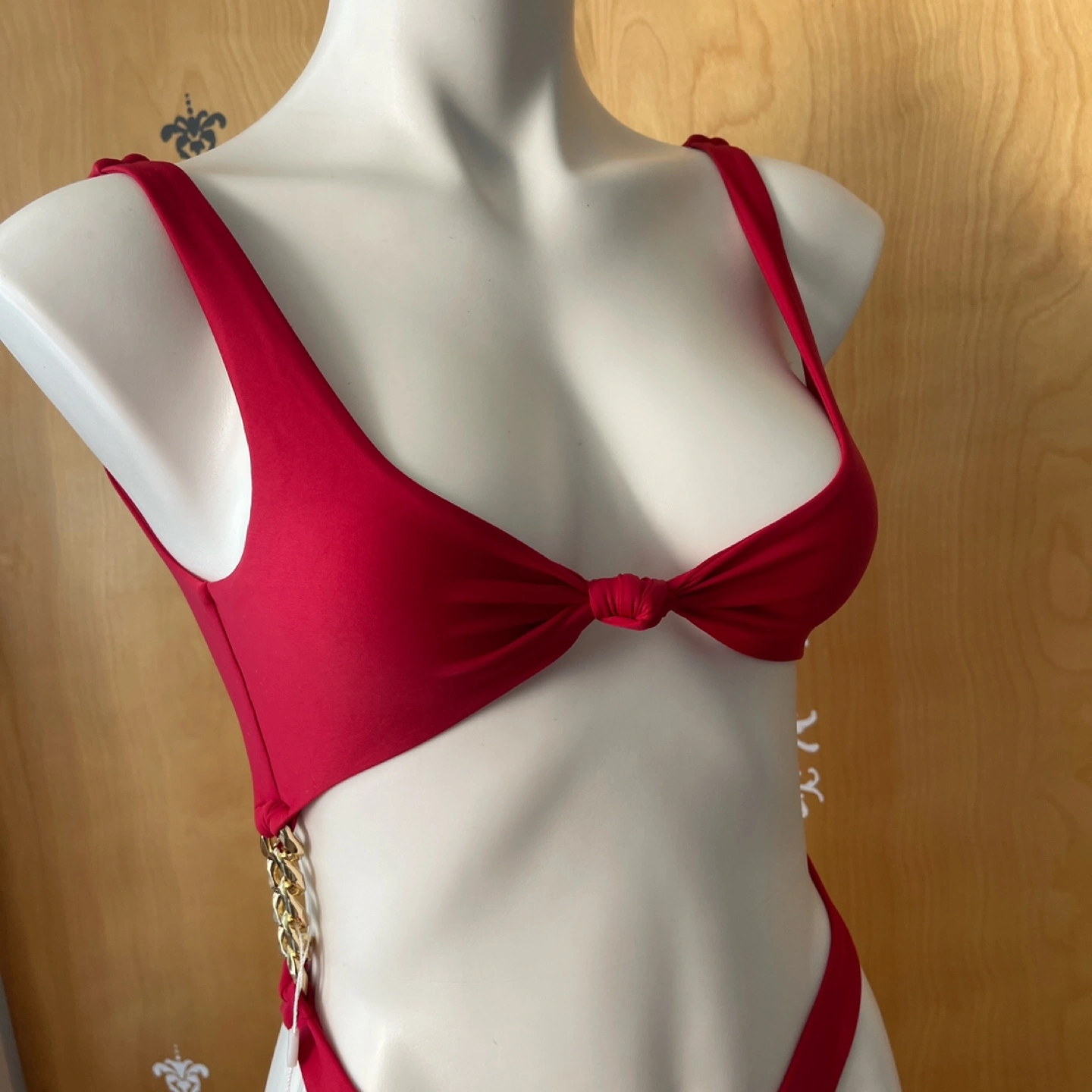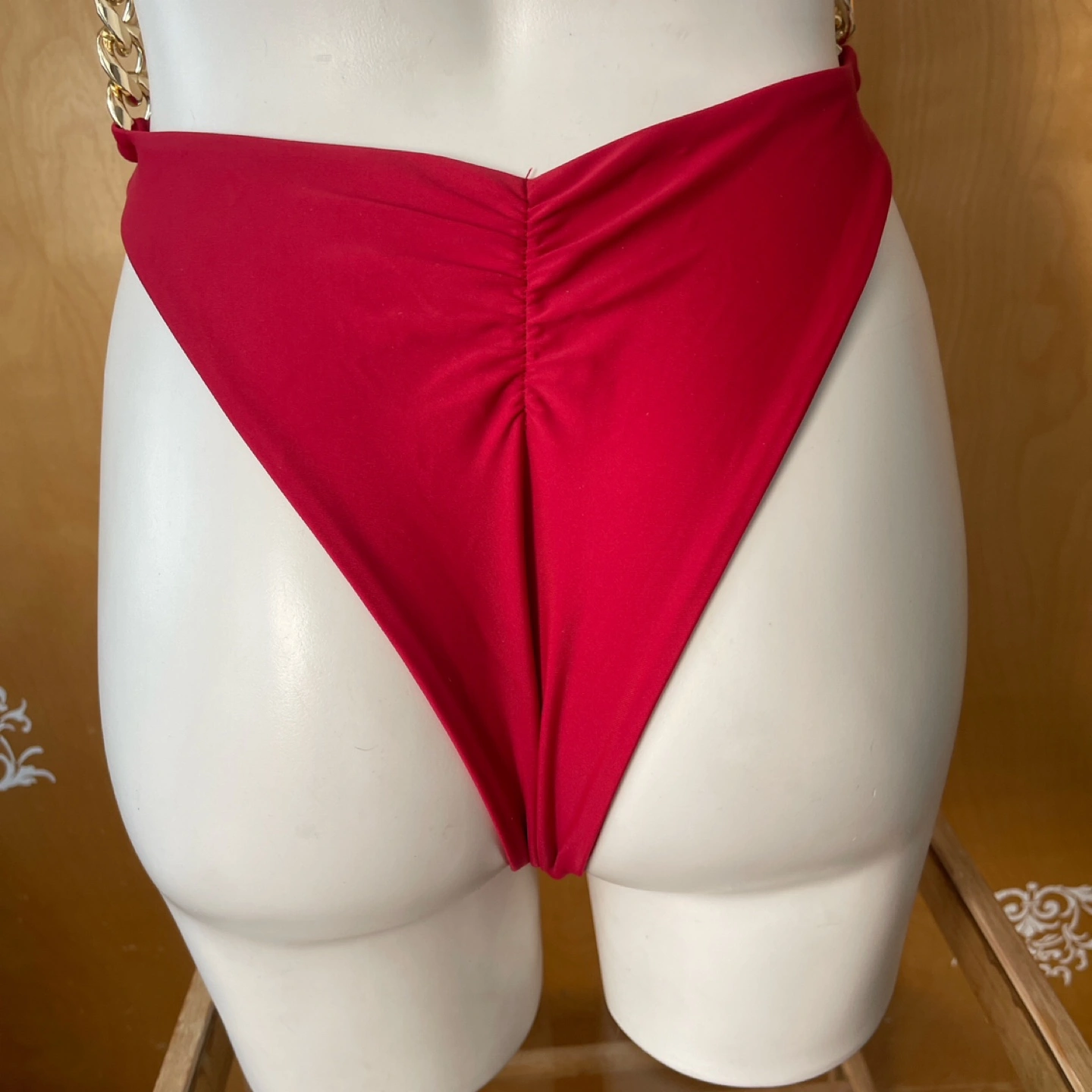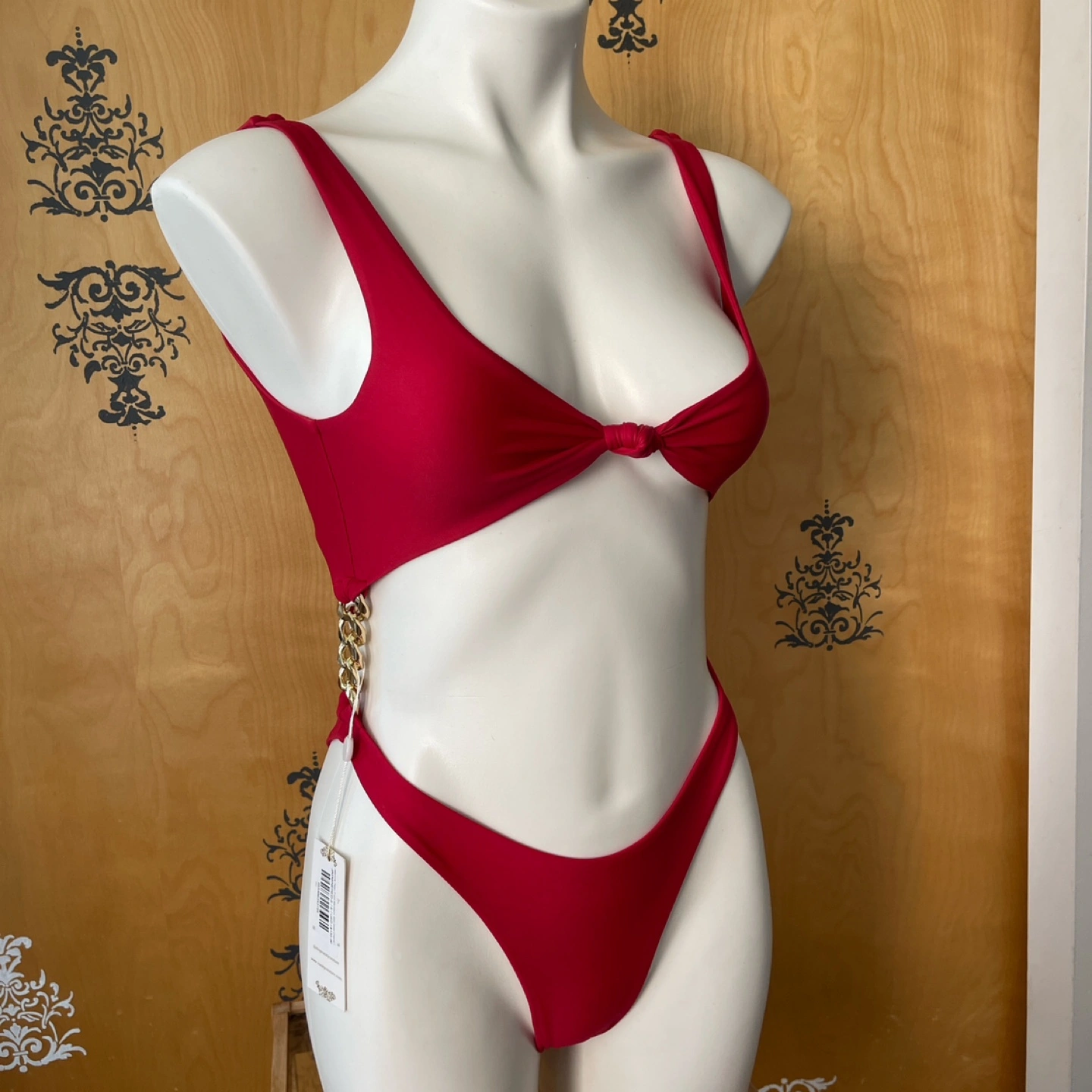NWT Red Monokini ‘Baywatch’ Swimsuit Cut Out Gold Chain Details Low Cut & High Cut Cheeky Bottoms Small