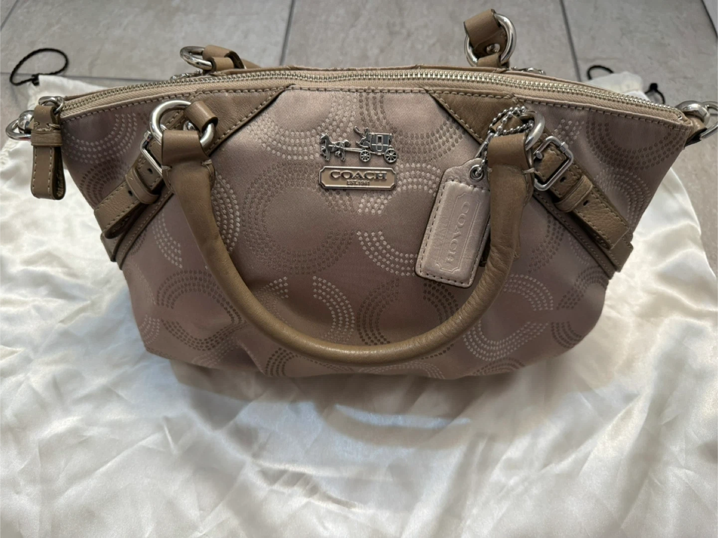 Coach Madison Dotted Beige Handbag Purse