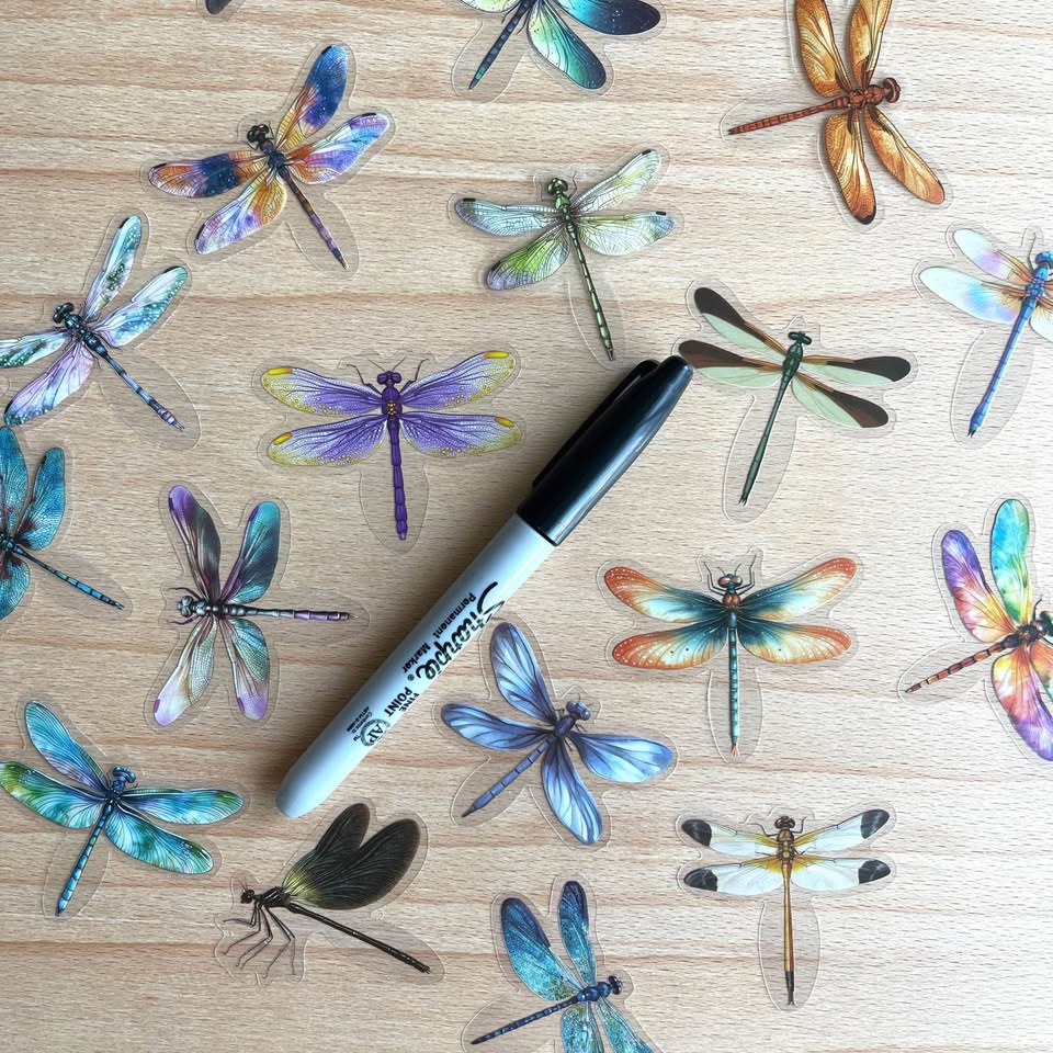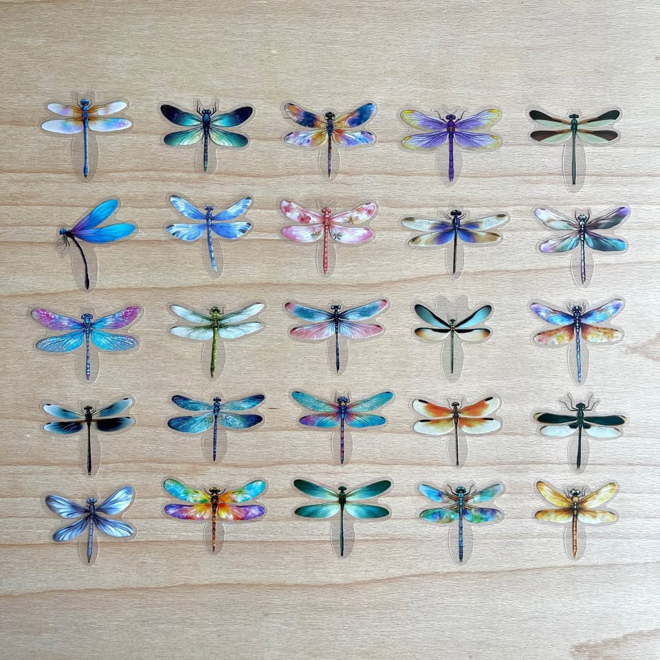 Pack of 50 Transparent Dragonfly Stickers