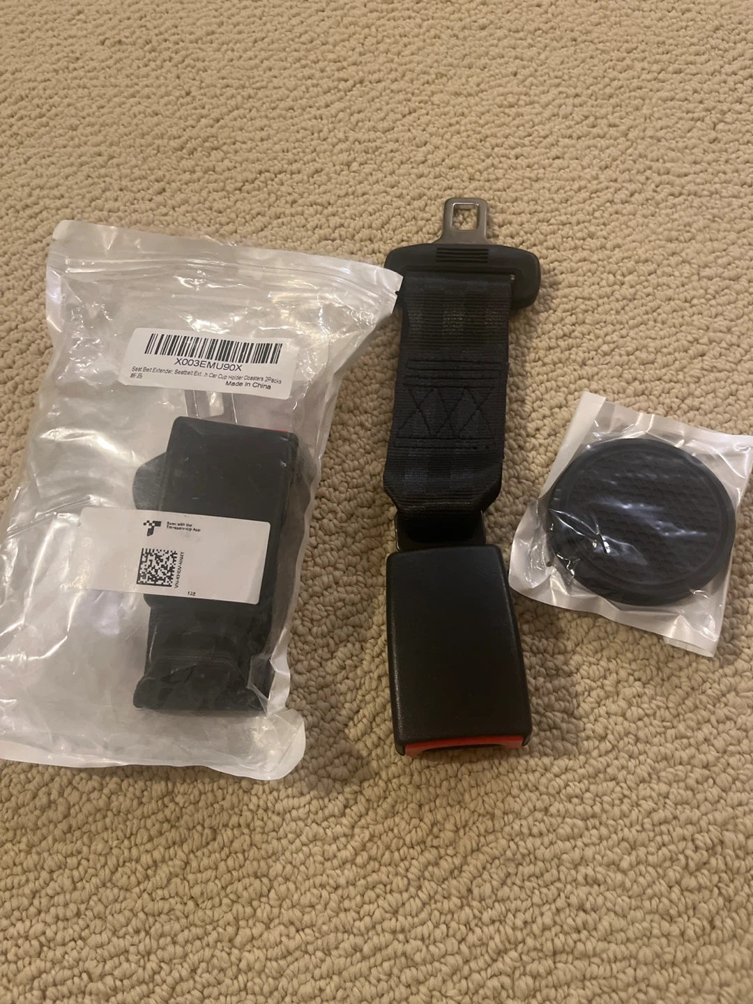 Selling a set of seat belt extender and two car cup holder coasters. They're brand new and still in their original packaging!
