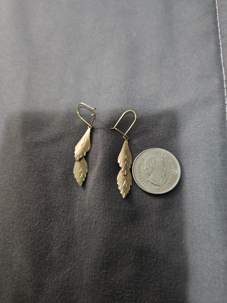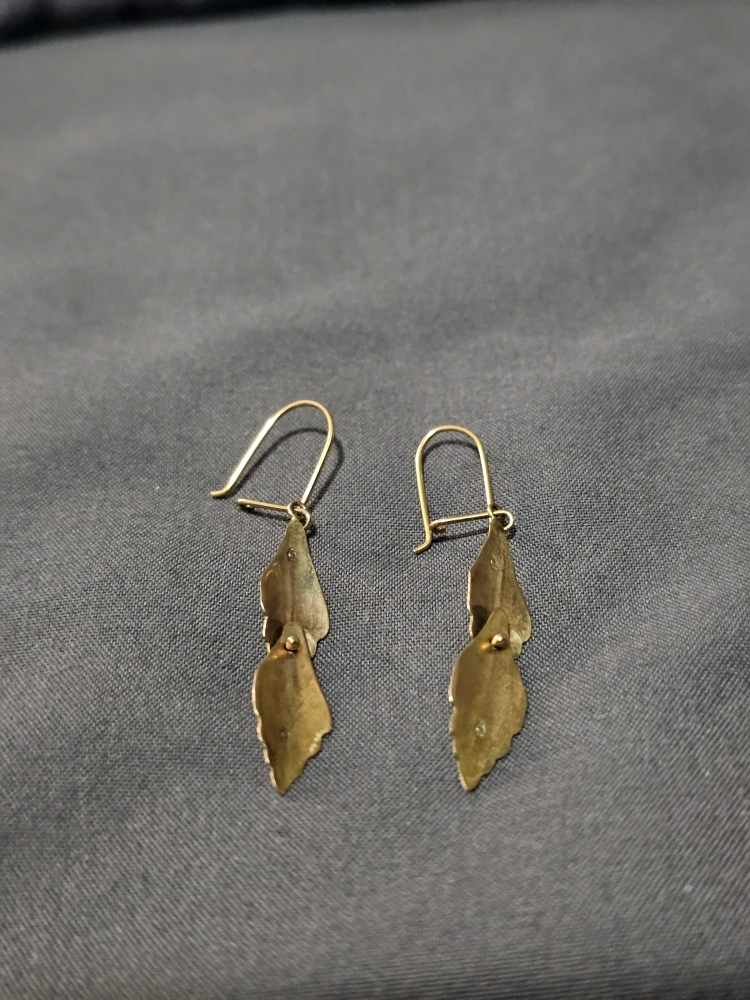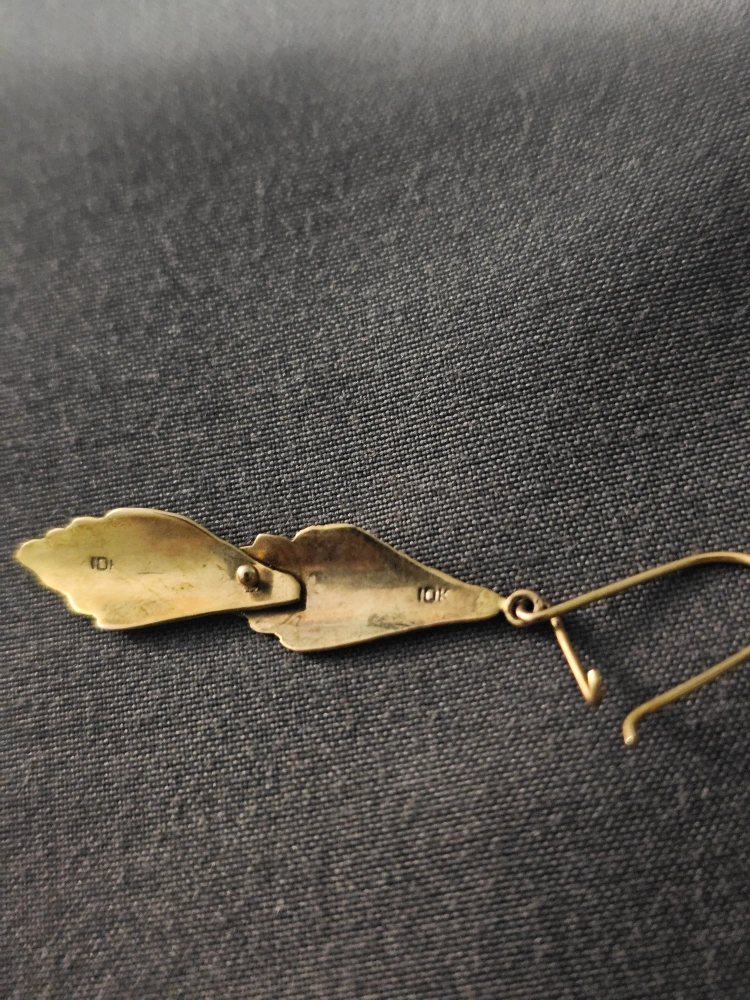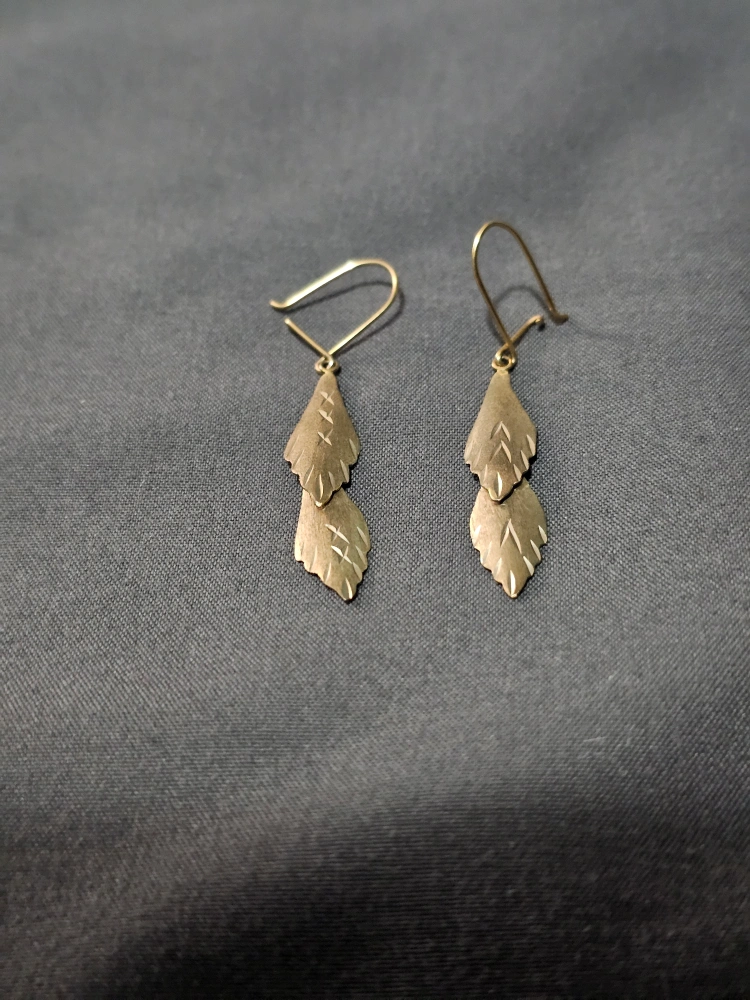 Selling a pair of lovely 10K gold leaf drop earrings! They have a delicate and elegant design, perfect for adding a touch of nature-inspired beauty to any outfit