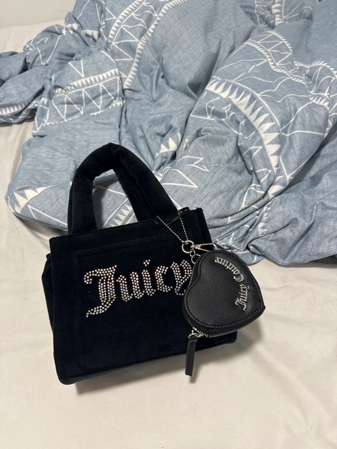 Selling a cute Juicy Couture mini tote bag in black! It's in brand new condition and comes with a heart-shaped coin purse. I have the box with it, unfortunately took off the tag so couldn’t return it.