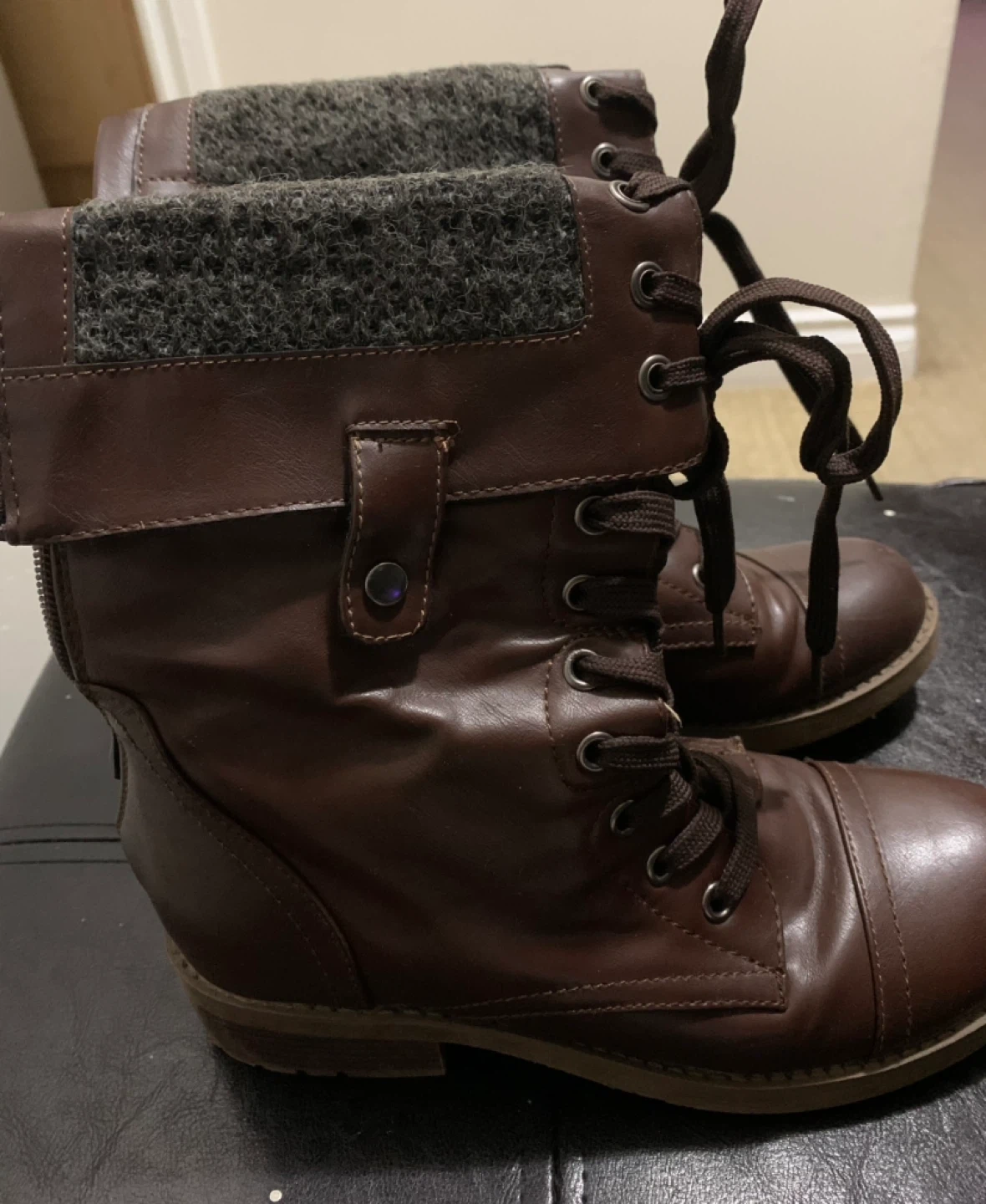 Buy & SellBootsBoots$14boots with lace-up and zipper detail! They're in good condition. Brand-Wanted Size 6.5WHERE TO MEETCheck LocationView MapSELLERKimBridgeview100 reviews0 chats·0 favorites·22 viewsSEND CHAT TO SELLERHi Kim! I’m interested in your listing.Hi Kim! I’m interested in your listing.Get the Karrot app to chatSign In to chat