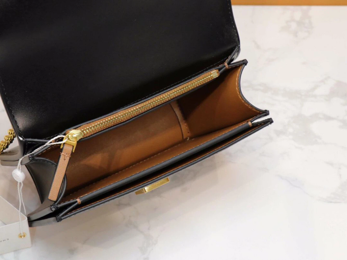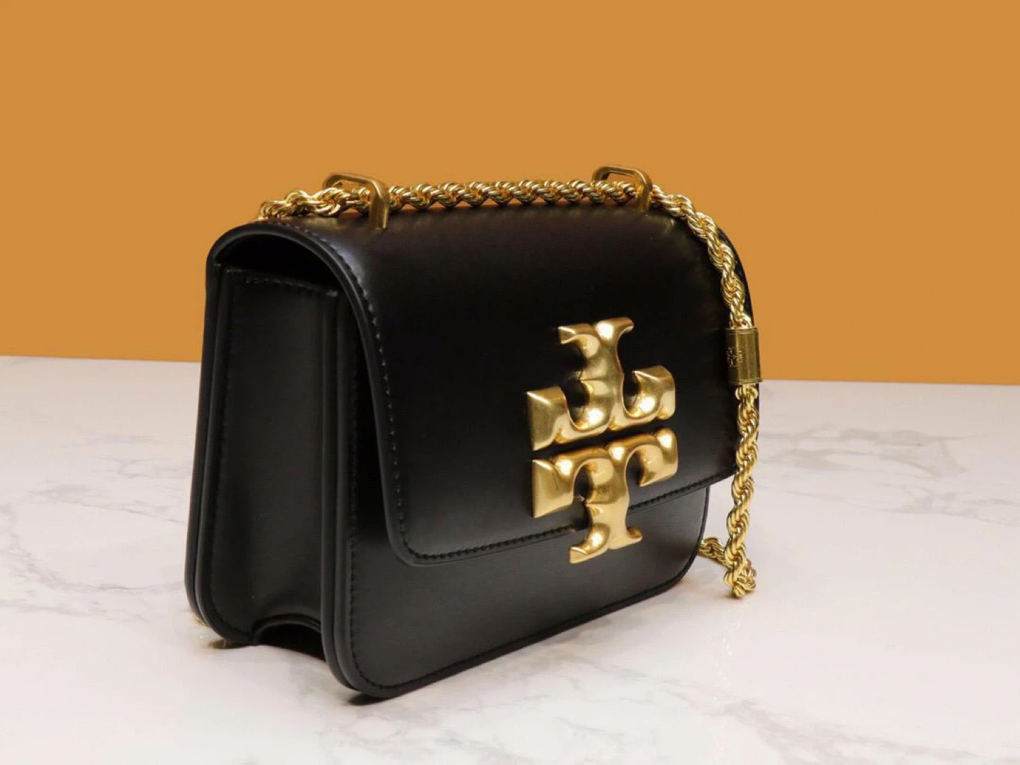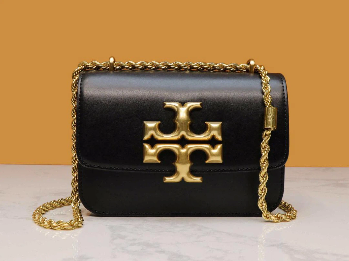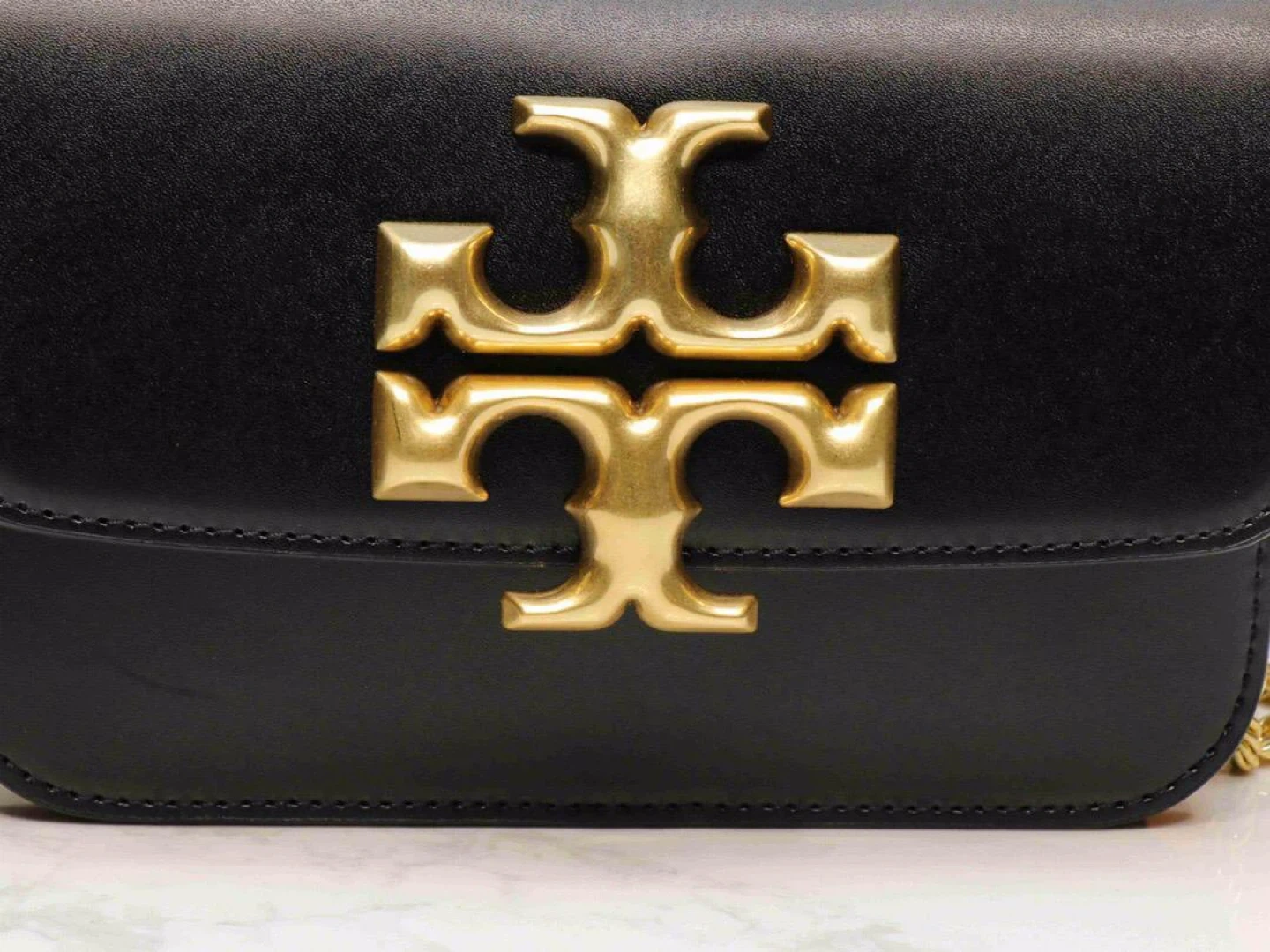 Selling a Tory Burch black leather shoulder bag. It features a gold chain and the Tory Burch logo. The bag is in great condition and is perfect for everyday use or a night out
