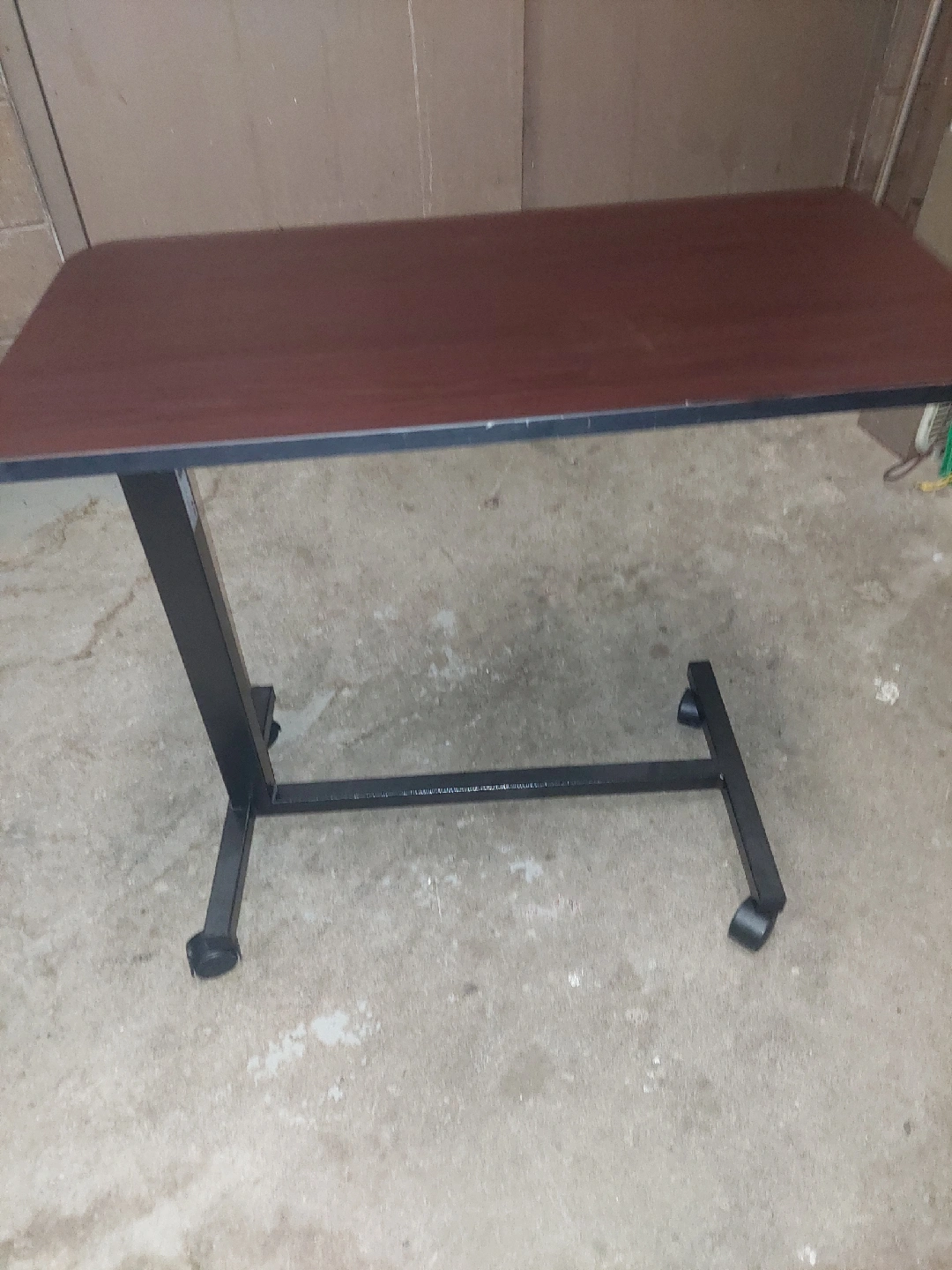 Selling a Drive Medical overbed table. It's perfect for anyone needing a convenient surface while in bed or sitting. The table is adjustable, so you can customize the height to your liking. It can support a max user weight of 40 lbs (18kg).
