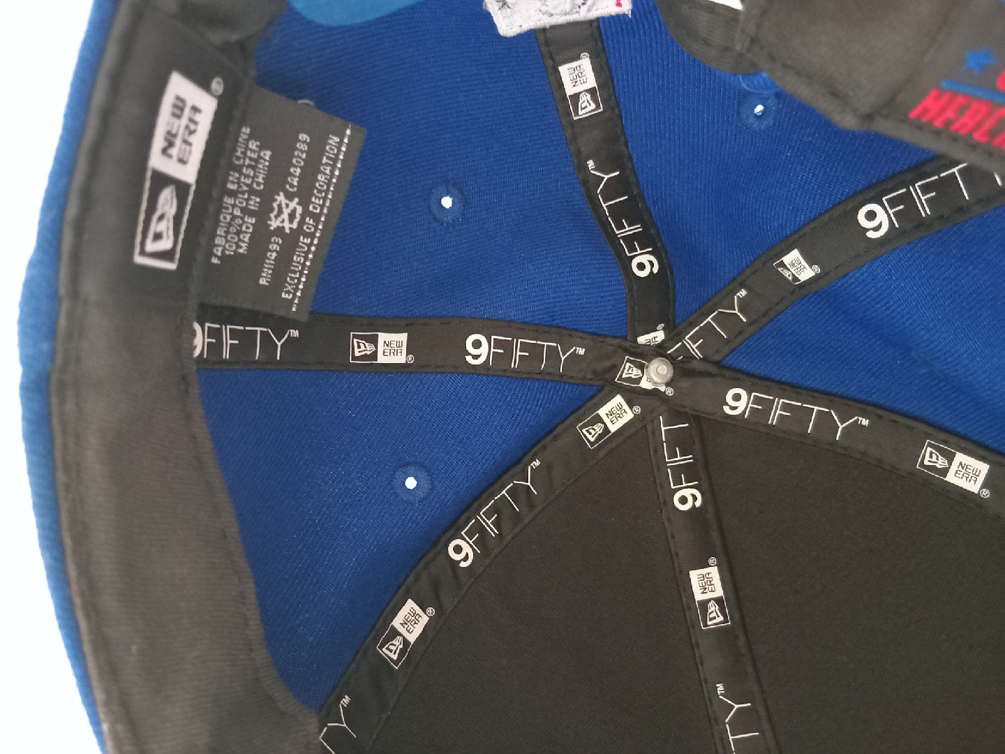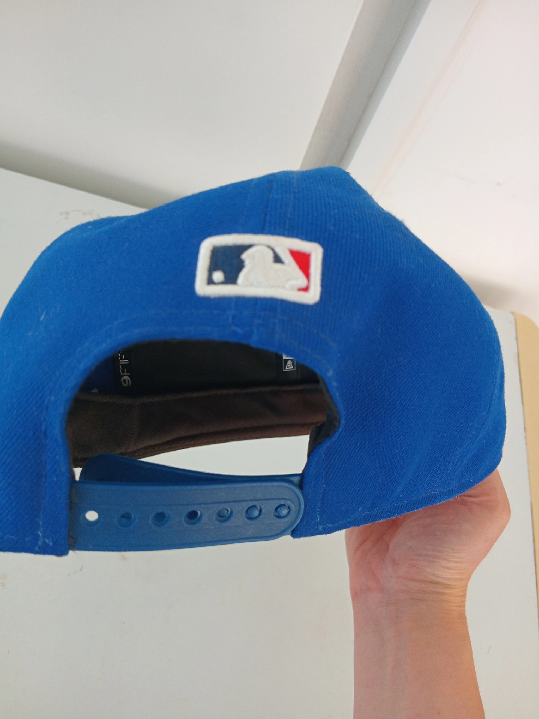Selling a New Era 9FIFTY Toronto Blue Jays hat! It's in great shape and ready for a new owner. The hat is blue with the Blue Jays logo on the front and the MLB logo on the back. It's a snapback, so it's adjustable to fit most sizes