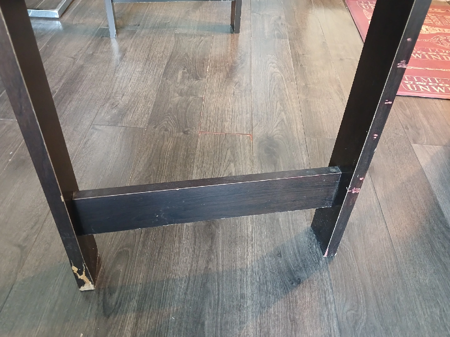 Selling a rustic-style desk with a drawer. It has a unique wood grain pattern on the top and a sturdy dark-coloured frame. Perfect for a home office or study space!