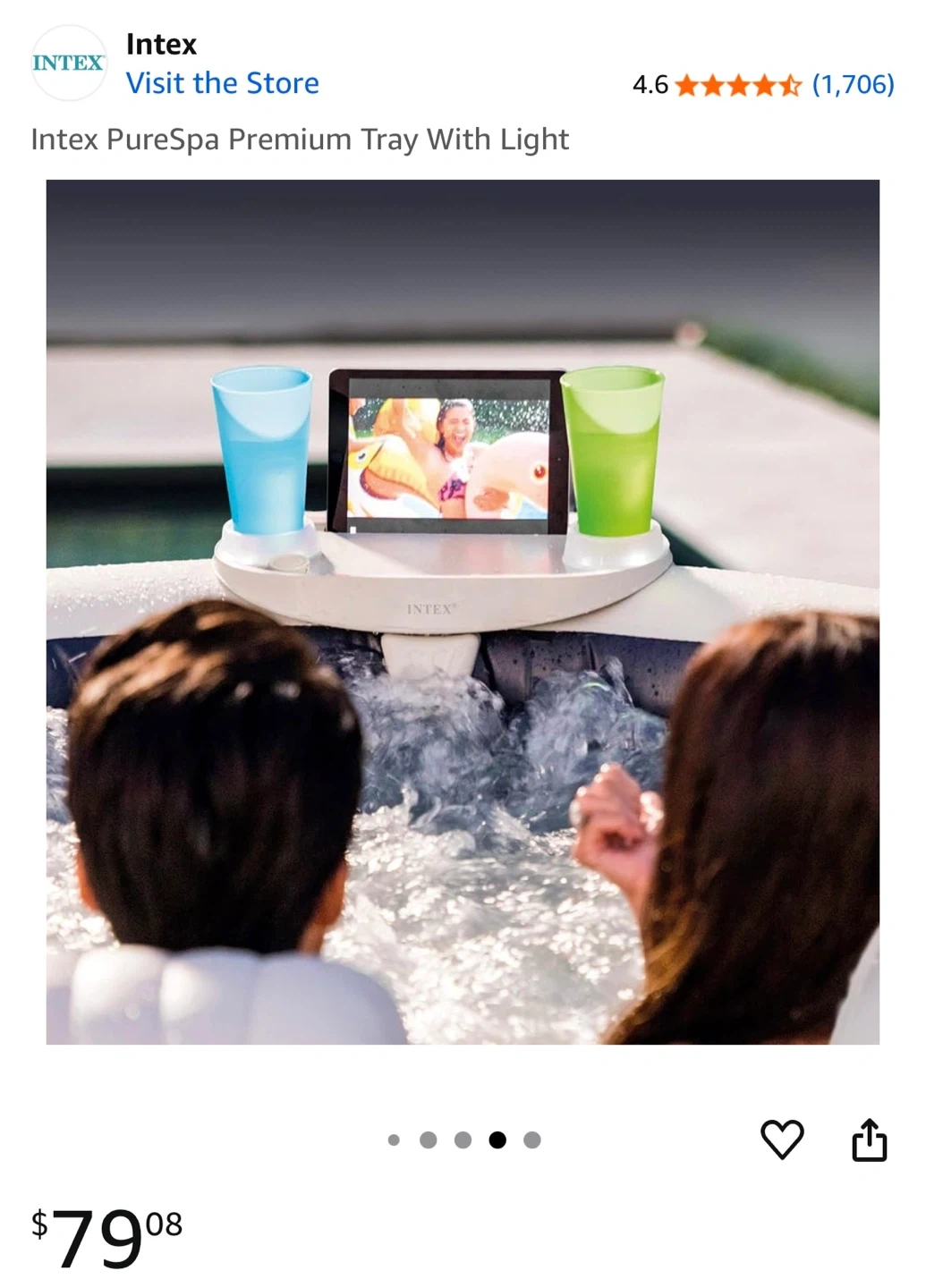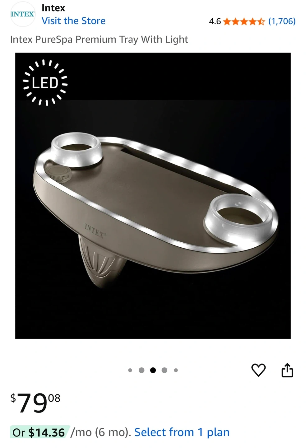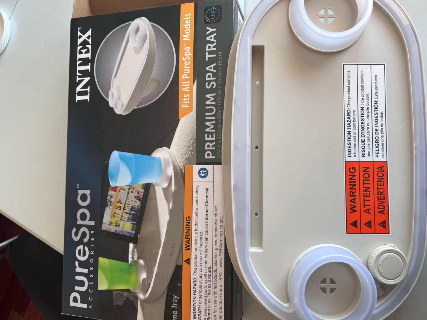 Selling an Intex PureSpa Premium Tray with Light! It's in great condition and comes with the original box. This tray fits all PureSpa models and measures 17.5 inches x 10 inches. It's perfect for holding drinks and tablets while you relax in your hot tub