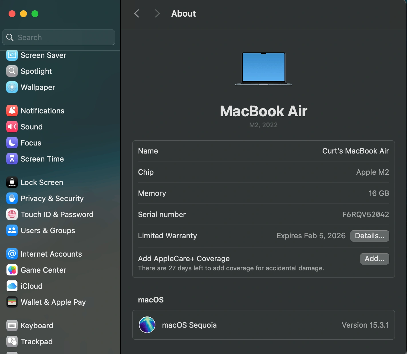 Selling my MacBook Air (Model A2681) with M2 chip, brand new, with Apple warranty until Feb 6, 2026!