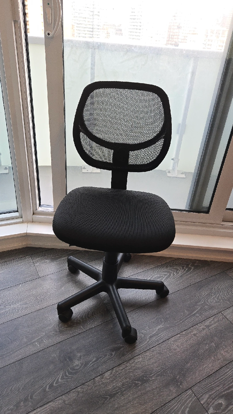 Looking to sell this black mesh office chair. It's in great condition and perfect for a home office or study space. The mesh back provides good support and breathability, making it comfortable for long hours. It has a standard adjustable height and swivel base.